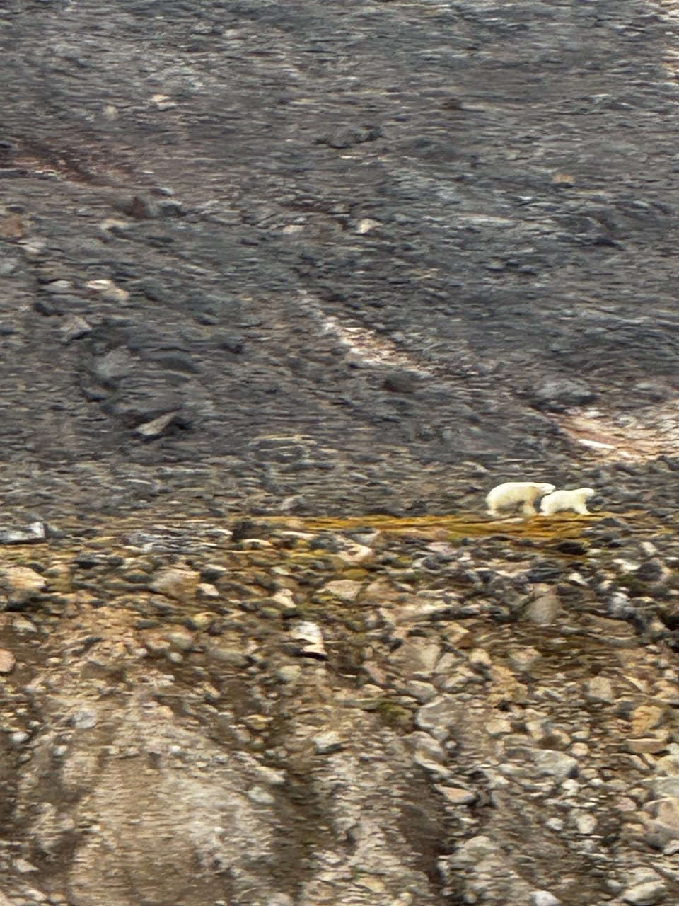 On a flat bench below the highpoint, we saw a mother polar bear and her cubs surveying their territory. We left quickly...