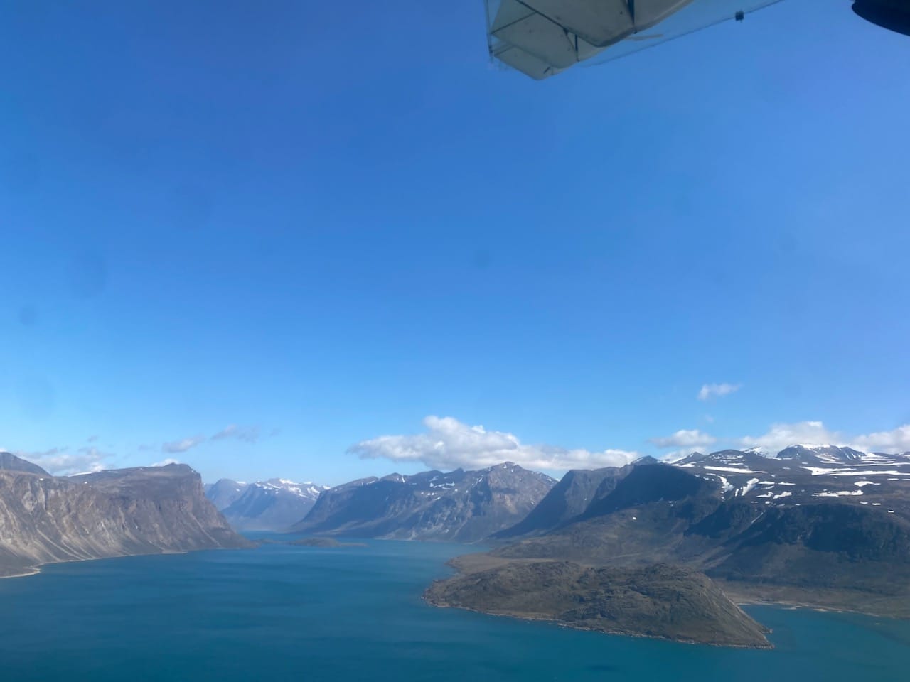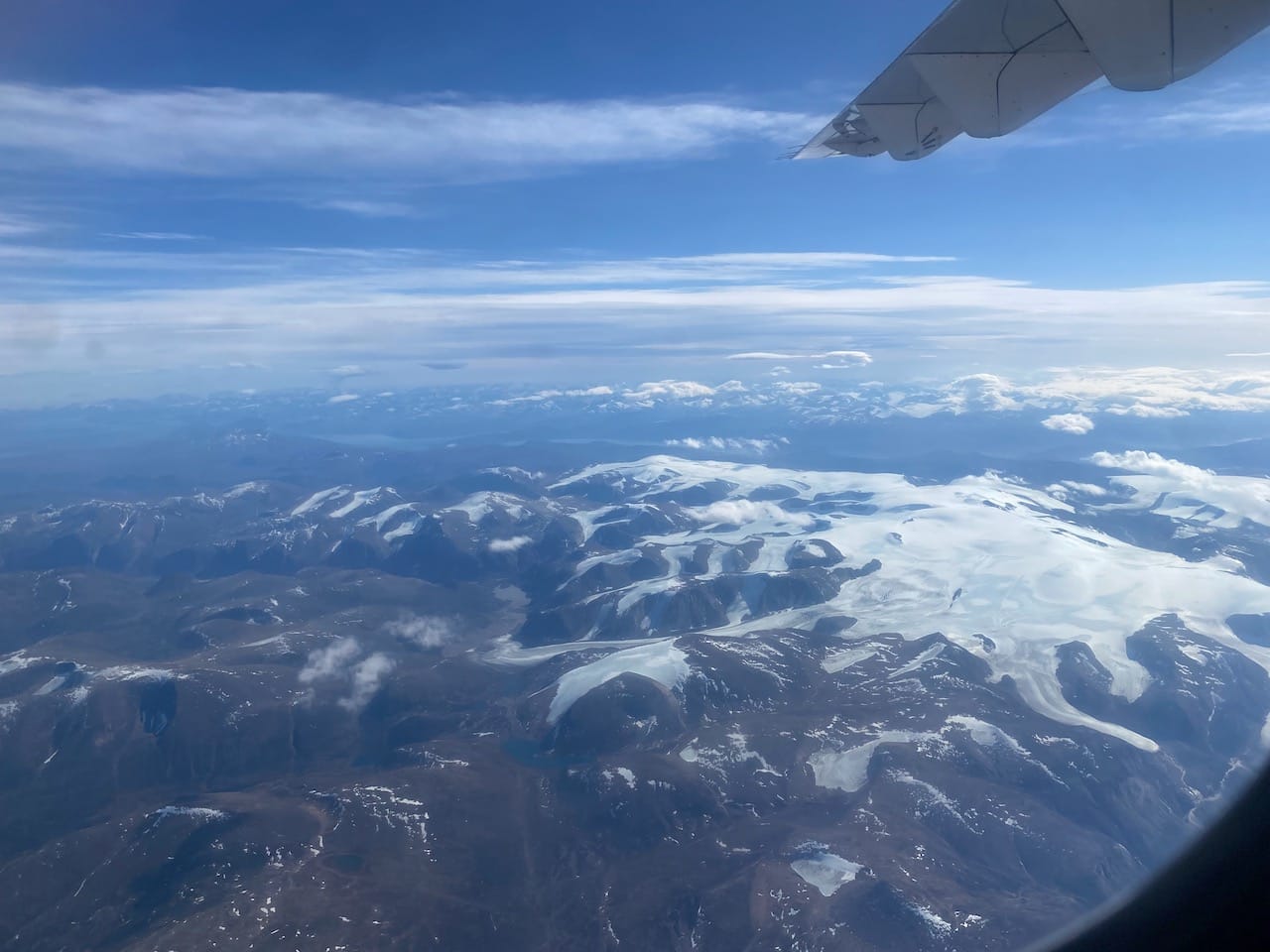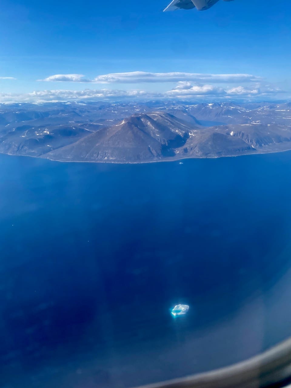 The next day, we began our long journey home. The skies over Qikiqtarjuaq were clear as we flew out of town, giving us an excellent view of the icebergs in the fjord and the icecap covering the peaks. As we approached the pass, clouds engulfed our route, but I kept track of the map to see where we’d gone.