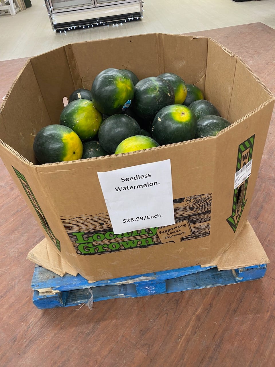 I spent the next day in town, walking around the area and enjoying another KFC lunch. Due to the fuel situation, I stocked up on cold meals at the Northern Store. Essentials (some fruits, meats, cheese) are heavily subsidized to Ontario prices and weren’t as expensive as expected, but the cost of everything else reflects the long journey needed to get there. The day’s special: a large crate of watermelons, on sale at $28.99 each.