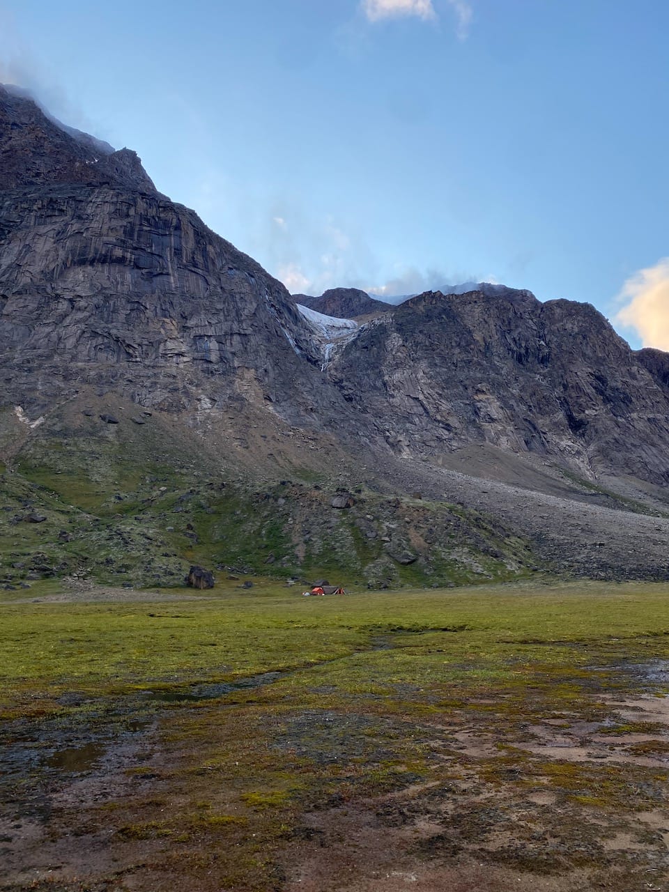 A few kilometres from the shelter, we came across two climbers outside their tent. They had been at their base camp for almost two months and had already summited nearly every peak in the area! Their attempt on Thor was planned for the following day. We didn’t catch their names, but they were likely well-known in the climbing world. After wishing them luck, we carried on and set up camp near the Thor shelter.