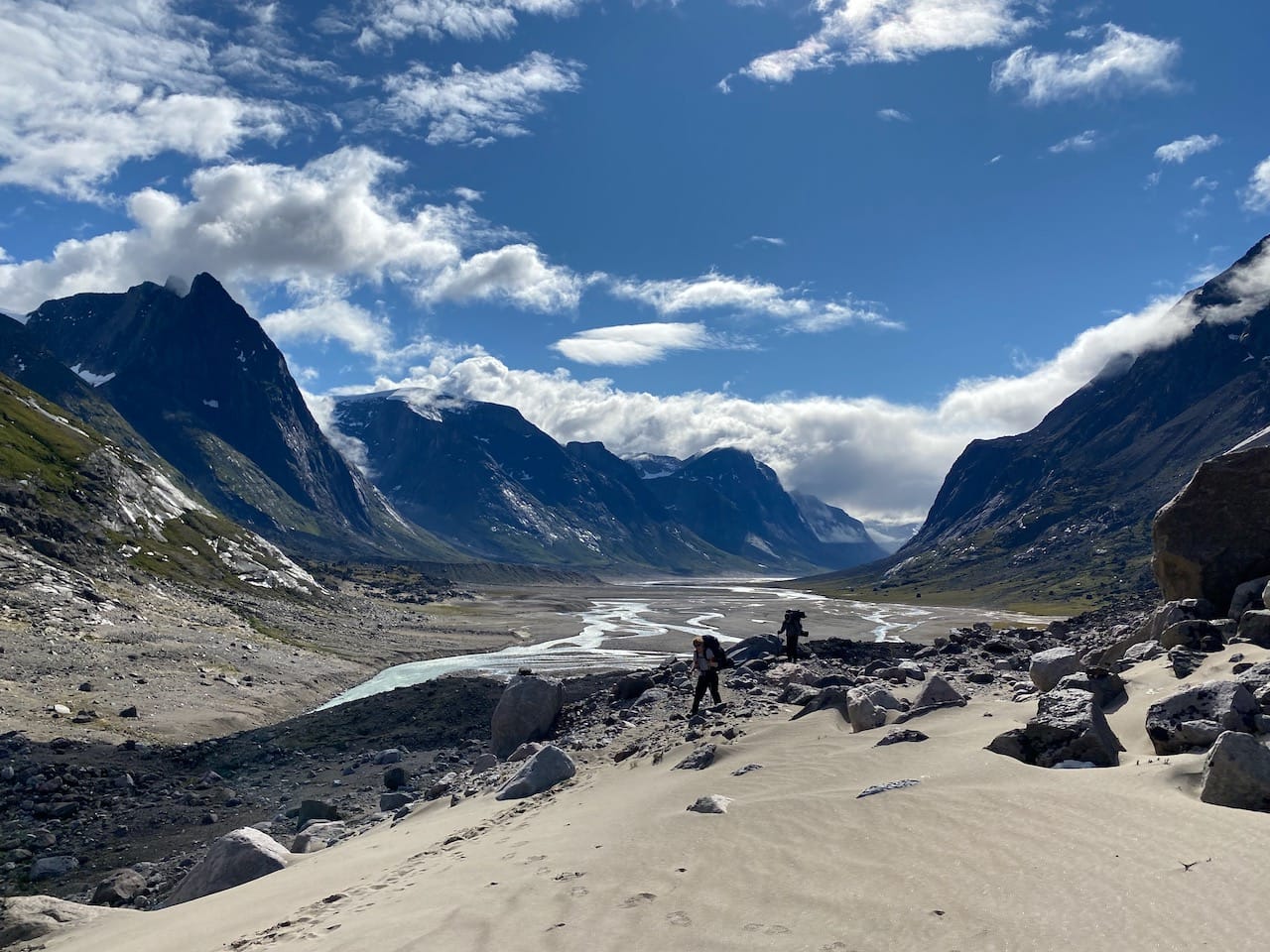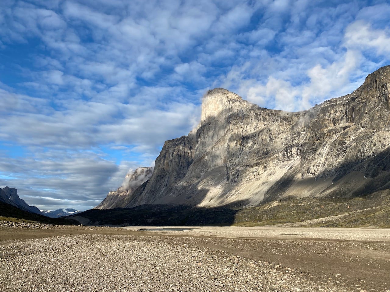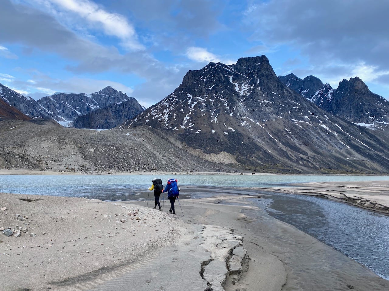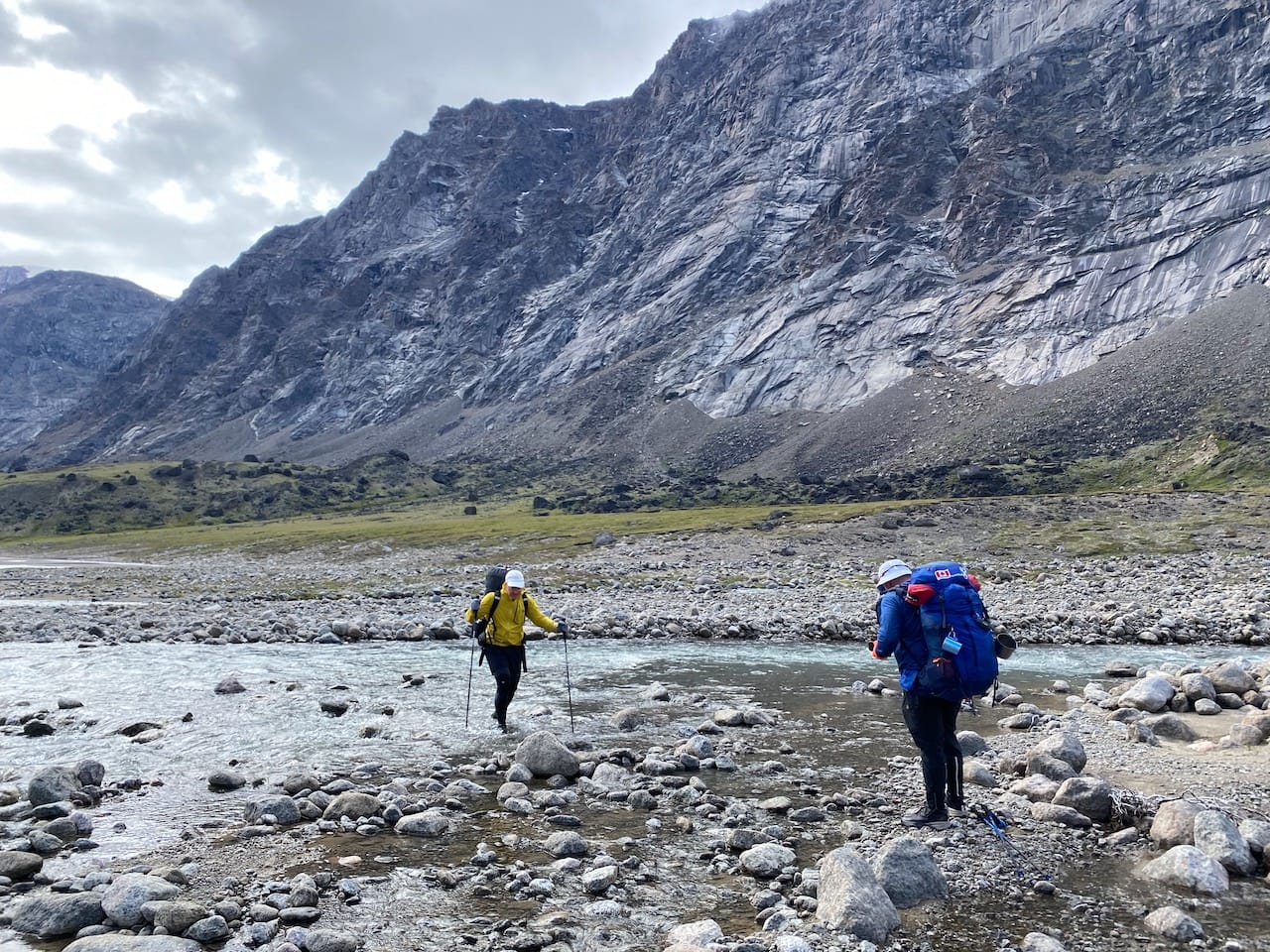 The next day, we woke up to fierce winds collapsing our tents. The area is known for these sorts of gales, but so far we’d mostly avoided them. It was difficult to stand upright, and wind blew sand everywhere. At one point I almost lost my jacket and had to sprint after it. Luckily, things calmed down after a few hours. We continued up the valley past many mini-Thors, looking back at Mount Asgard until it, too, disappeared behind a corner.