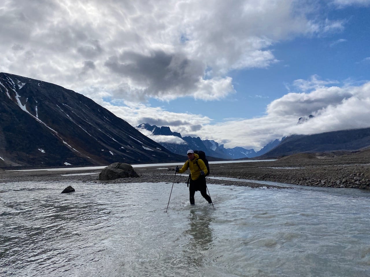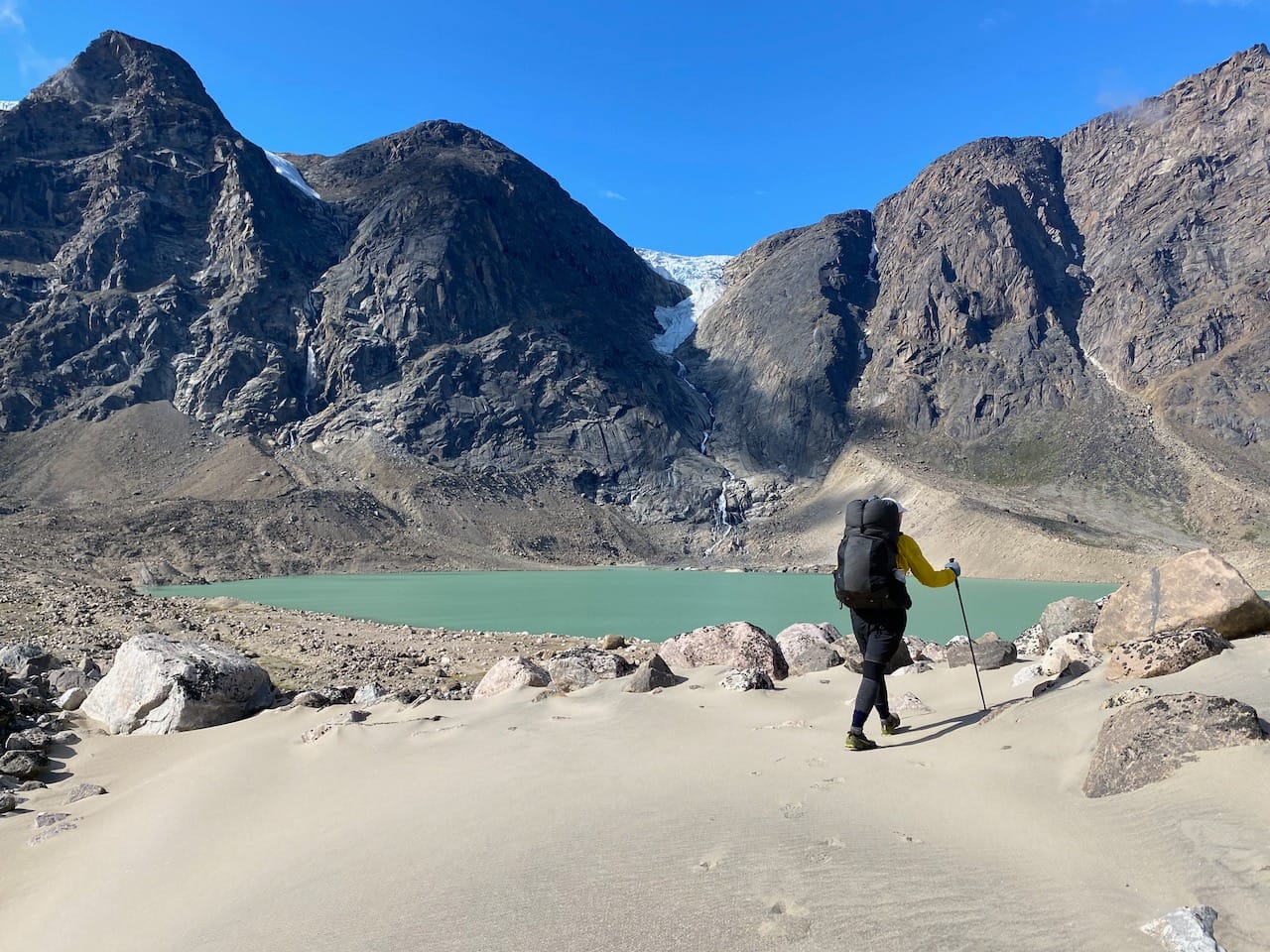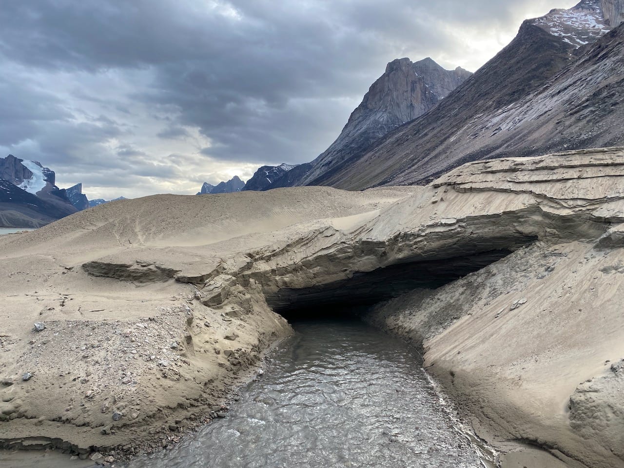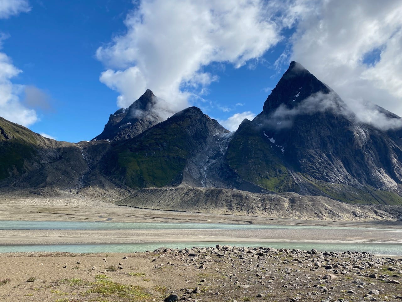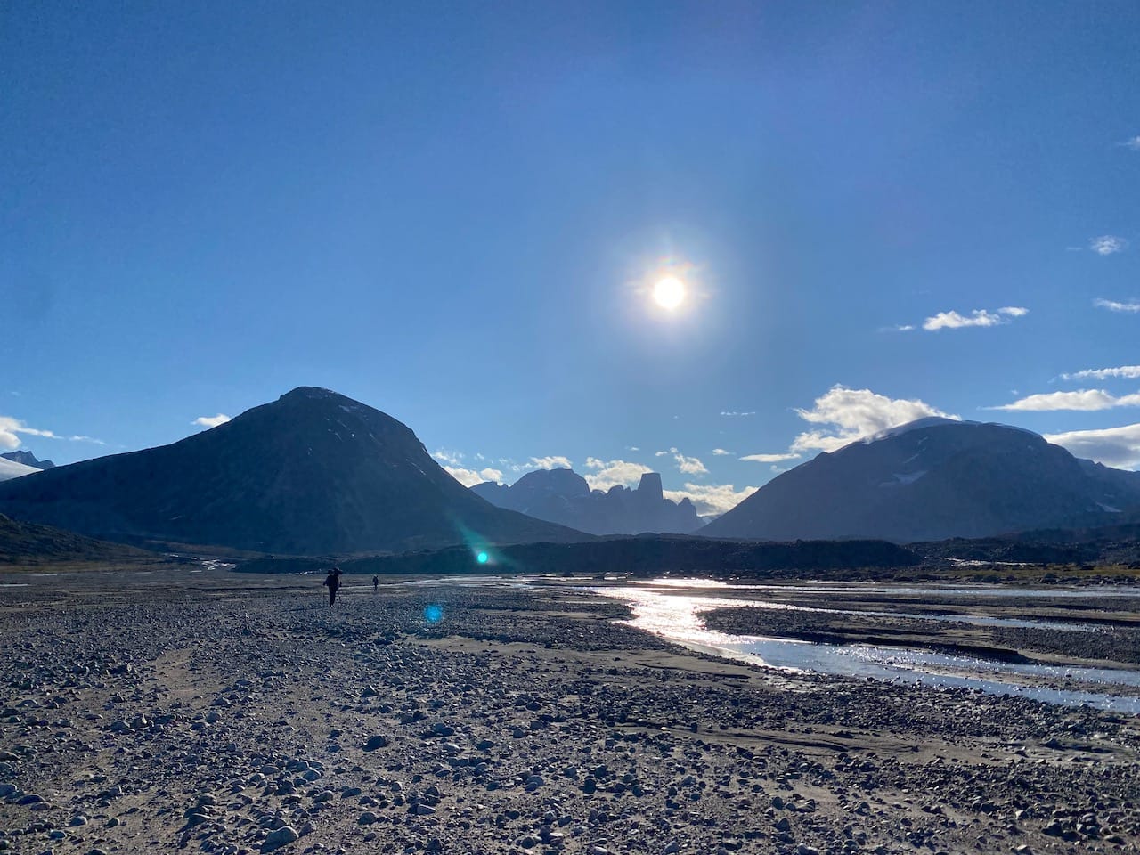 The next day, we woke up to fierce winds collapsing our tents. The area is known for these sorts of gales, but so far we’d mostly avoided them. It was difficult to stand upright, and wind blew sand everywhere. At one point I almost lost my jacket and had to sprint after it. Luckily, things calmed down after a few hours. We continued up the valley past many mini-Thors, looking back at Mount Asgard until it, too, disappeared behind a corner.