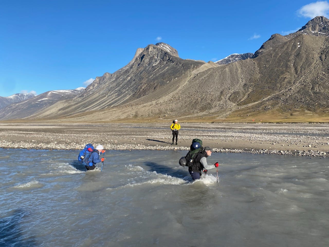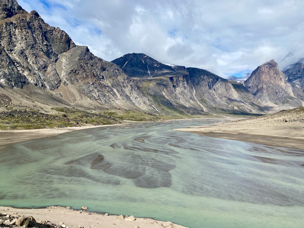 We found ourselves on a beach surrounded by massive granite cliffs as far as the eye could see. Glaciers had carved near-vertical edges out of the mountains. To the north was the estuary of the Owl River. This was the most desolate landscape I had ever seen. No plants were visible, aside from small tufts of grass and Arctic willow. Further away, the river curved around a corner and disappeared from view.