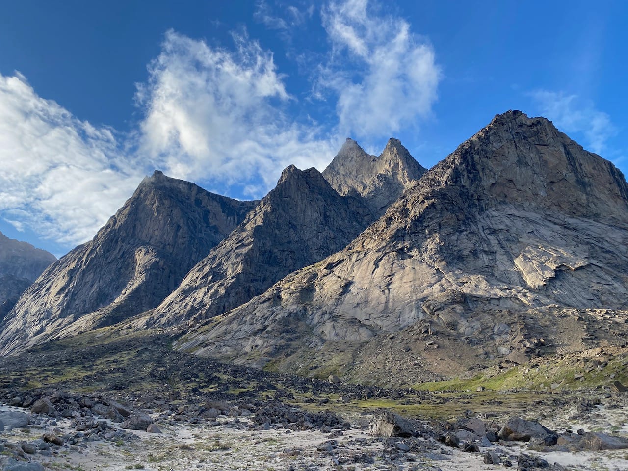 Little information exists online about climbing the mountains along the pass. Some of the unnamed peaks in the northern half of the pass, less steep than Thor and Asgard, seemed like they could be accessible without technical climbing. Additionally, it seemed possible to scramble up Mount Battle (on the south shore of Glacier Lake) from its eastern side, but we didn’t have time to explore. Some groups will take side trips to the base of Mount Asgard (see https://www.ronperrier.net/2020/01/05/akshuyak-pass-auyuittuq-national-park/ for directions). Climbers and groups with glacier travel gear have many more options.