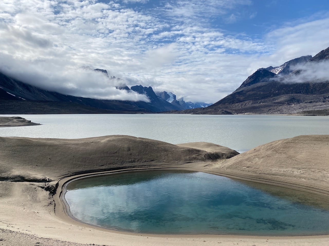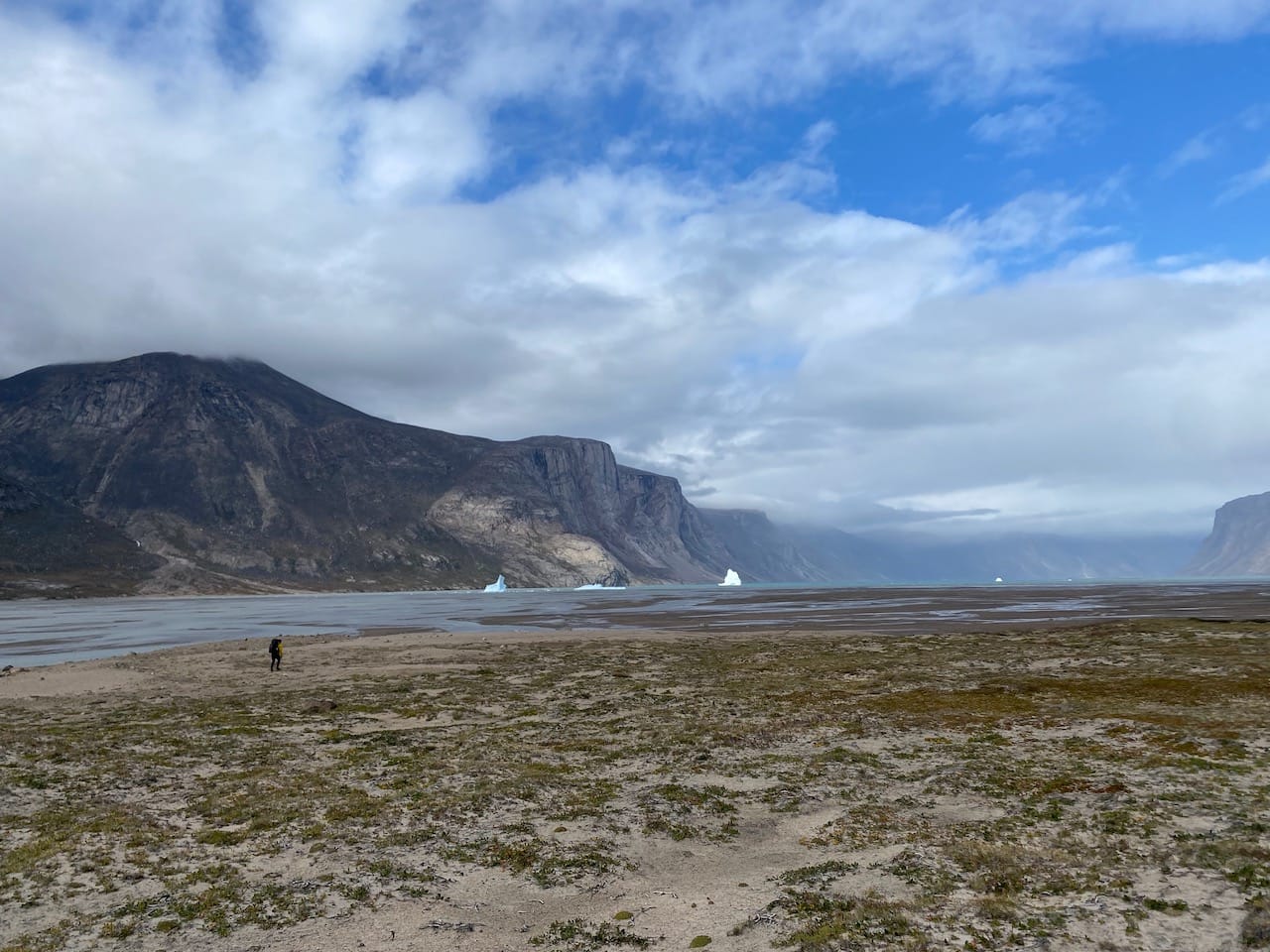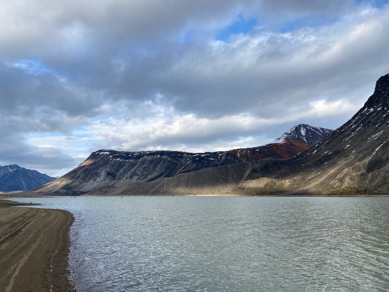 We came to a small rise in the terrain and I saw something I’ll never forget. In the distance was the North Pangnirtung Fjord. On the beach were five to ten icebergs, small specks in the horizon but actually the size of a building. They grew larger as we approached the beach. After one last creek crossing, we were on the beach 5km away from our pickup spot at the last shelter.