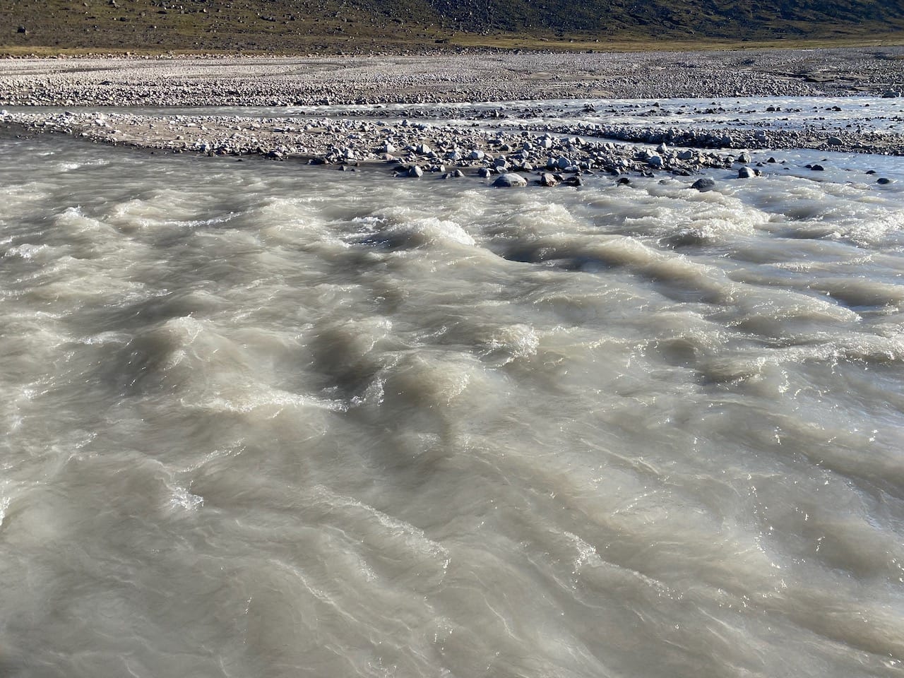As I jumped across one small creek, the water below me erupted in a frenzy of splashes! Something large was underwater. I landed on the other side quickly, with all digits intact. Through the sand, we saw several spawning Arctic char. Terrifying.