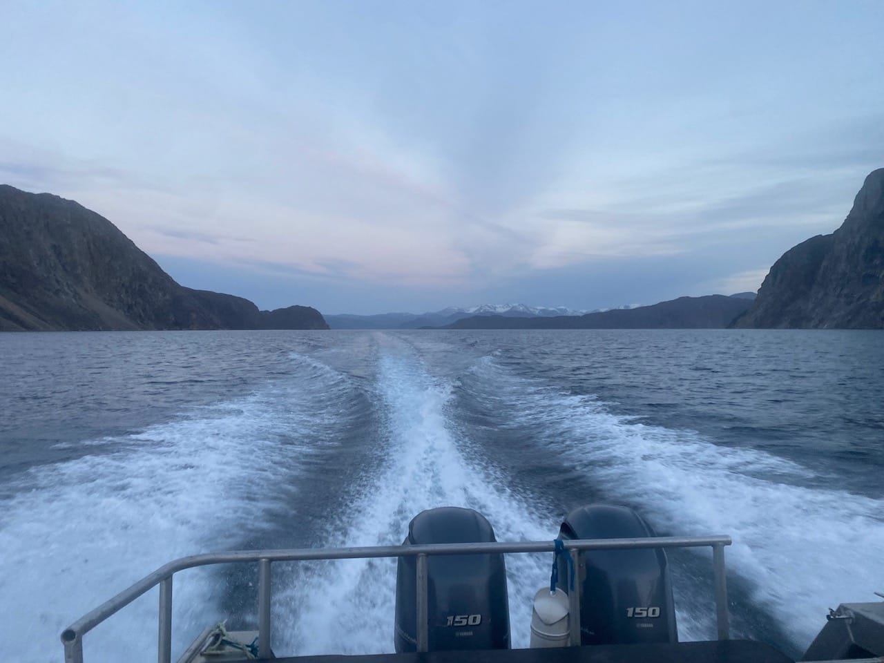 We’d arranged a pickup with Billy Arnaquq, the boat operator at Qiqiktarjuaq. We were several hours ahead of schedule, so we sent him a message and relaxed in the shelter for a few hours, admiring the scenery. I might have set a record for the northernmost latitude at which Brooklyn Nine-Nine has been watched. Later, we were joined by Sebastien, an Inuk from Quebec who had recently moved to Qikiqtarjuaq. He’d worked and travelled all around the country, including the two other territories, before moving to Qik for the first time a couple years earlier. He had some interesting stories.