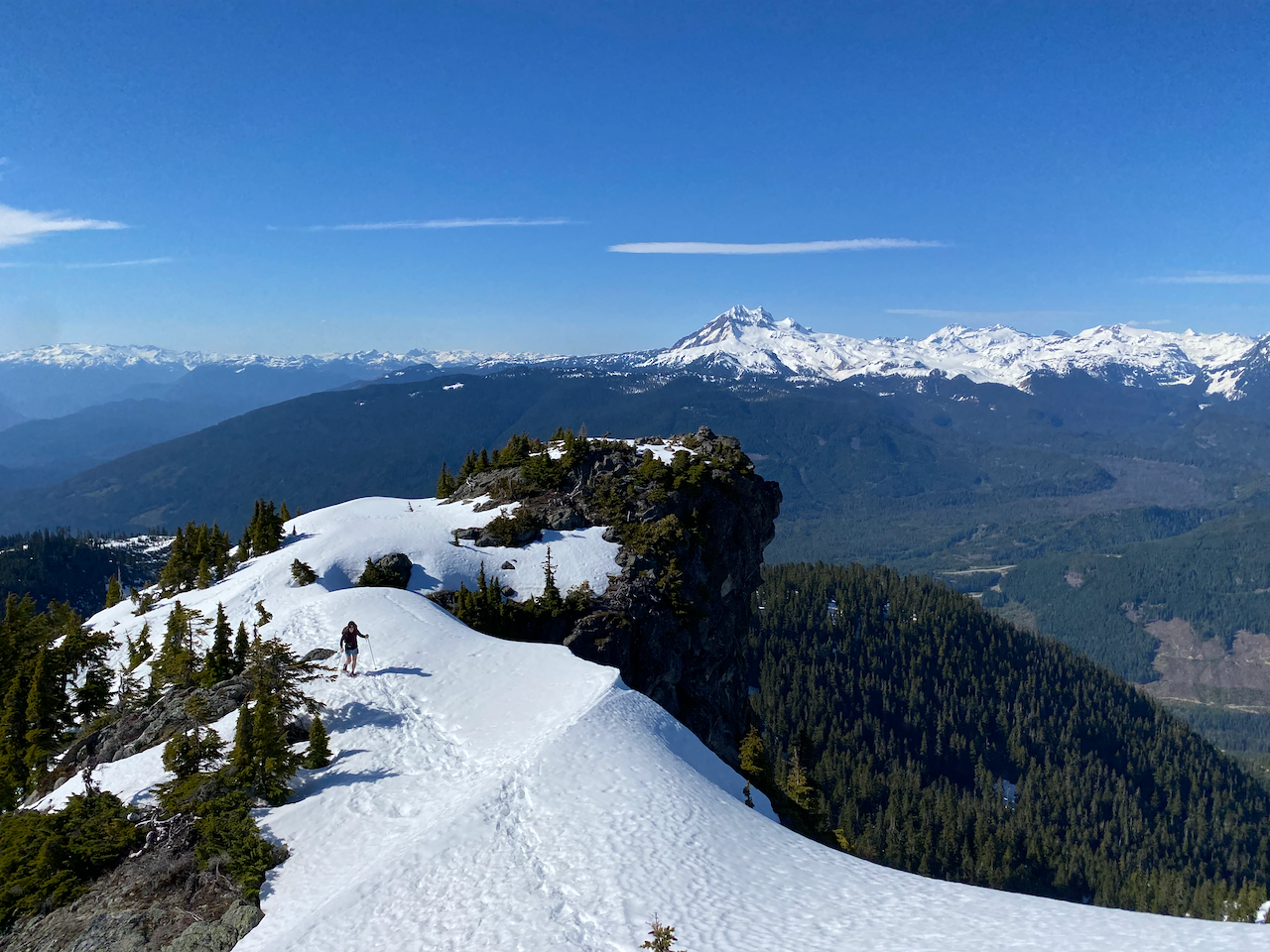 Alpen Mountain, located east of Squamish, is a prominent peak that offers stunning 360-degree views from its summit. The last kilometre to the summit involves some steep sections and avalanche terrain. Although it is well-known among ski tourers and snowshoers in the winter and spring, it remains a somewhat obscure destination for regular hikers.