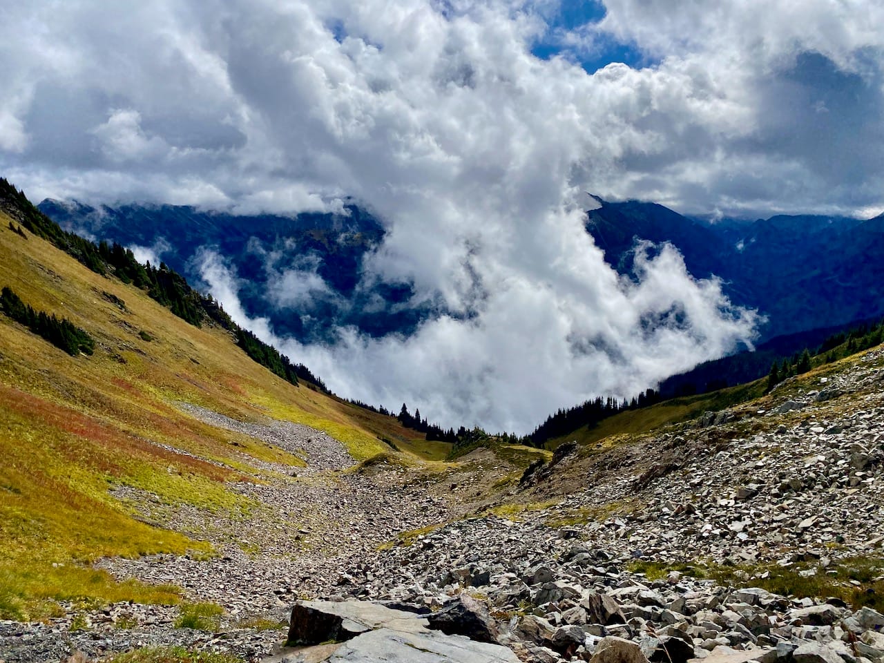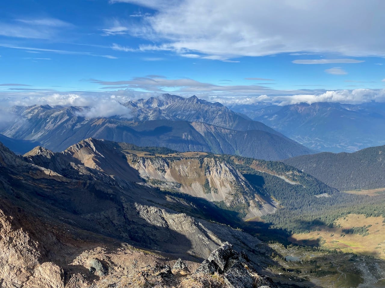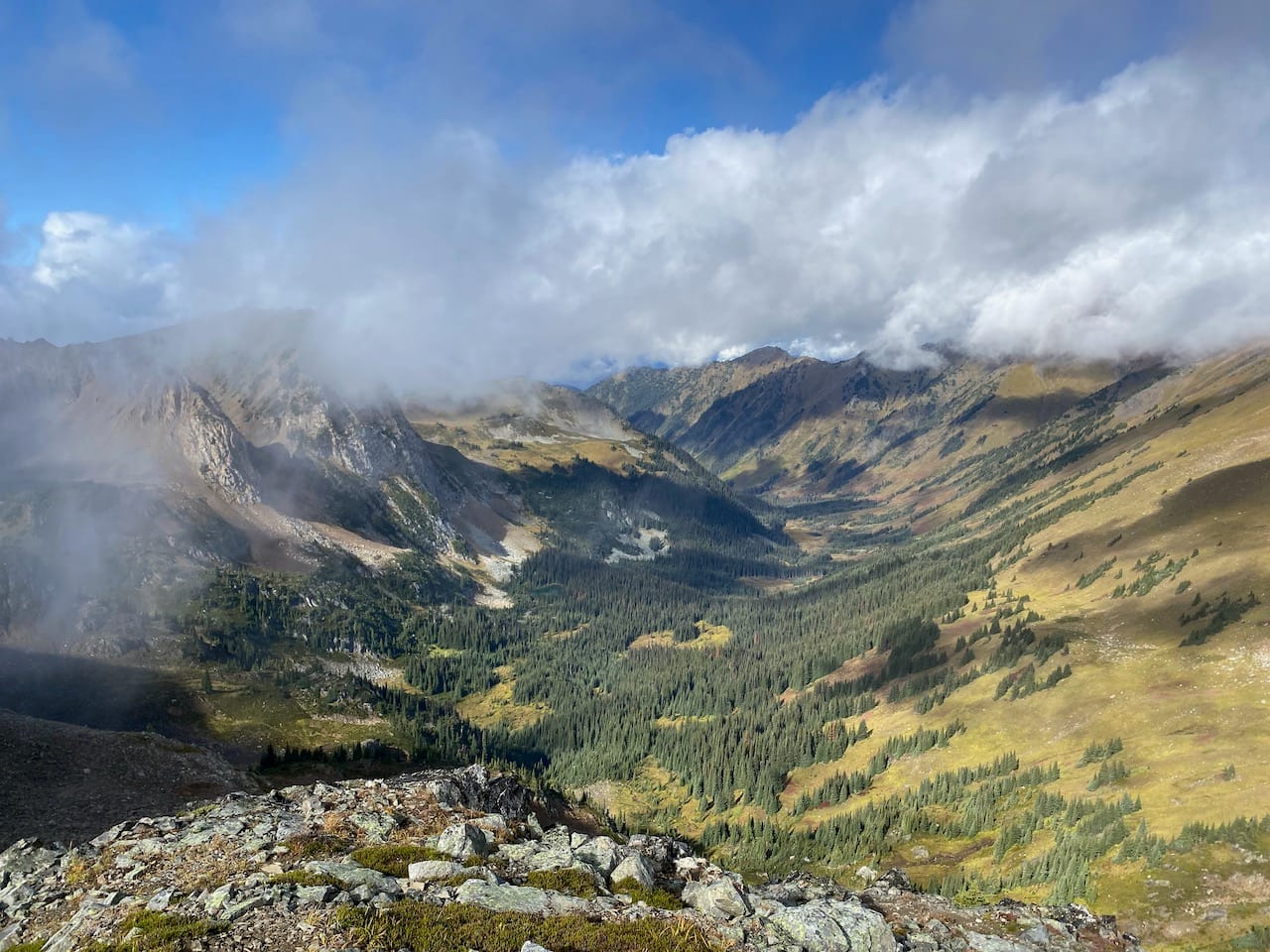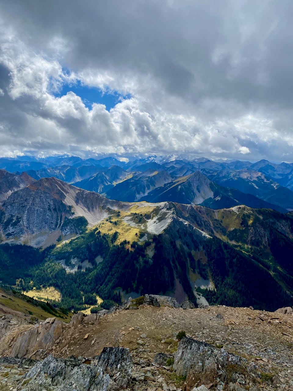 By the time I returned to the ridge, the cloud ceiling was above the mountains and the views were basically unobstructed.