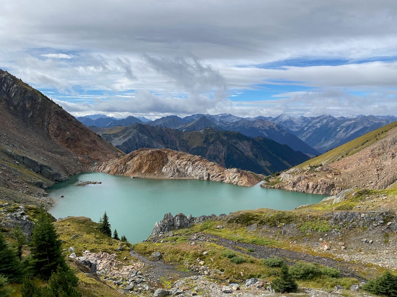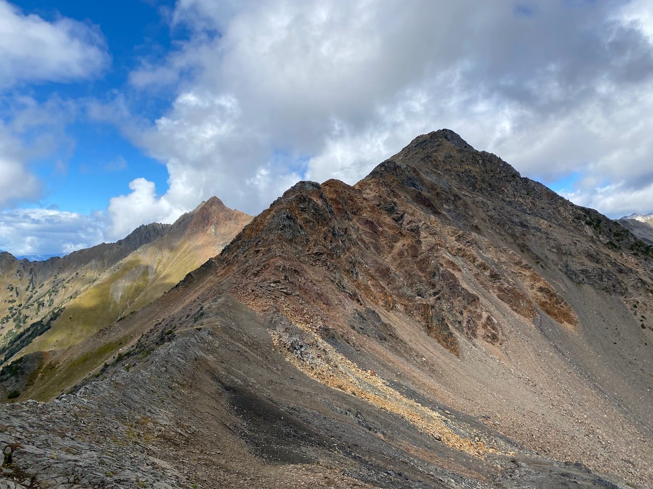 This is part 2 of a traverse of the ridgeline around the Barkley Valley north of Pemberton. The previous day, I had hiked from the trailhead to the cirque below “Billy Peak”, with a detour to visit the Hurley silver mine peaks. My goal for the rest of the trip was to travel counterclockwise from Billy Peak to Twin Lakes, with some peakbagging and scrambling along the way. This was accomplished with some detours.