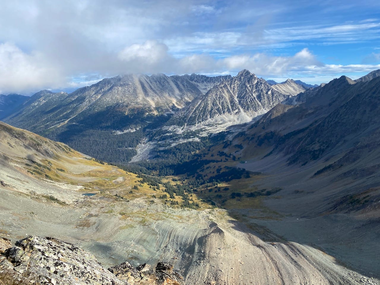 I stopped to drink some water, but my Nalgene slipped out of my hand and fell 50m into the Cayoosh Creek drainage basin. I scrambled down to retrieve it. Somehow it hadn’t broken.