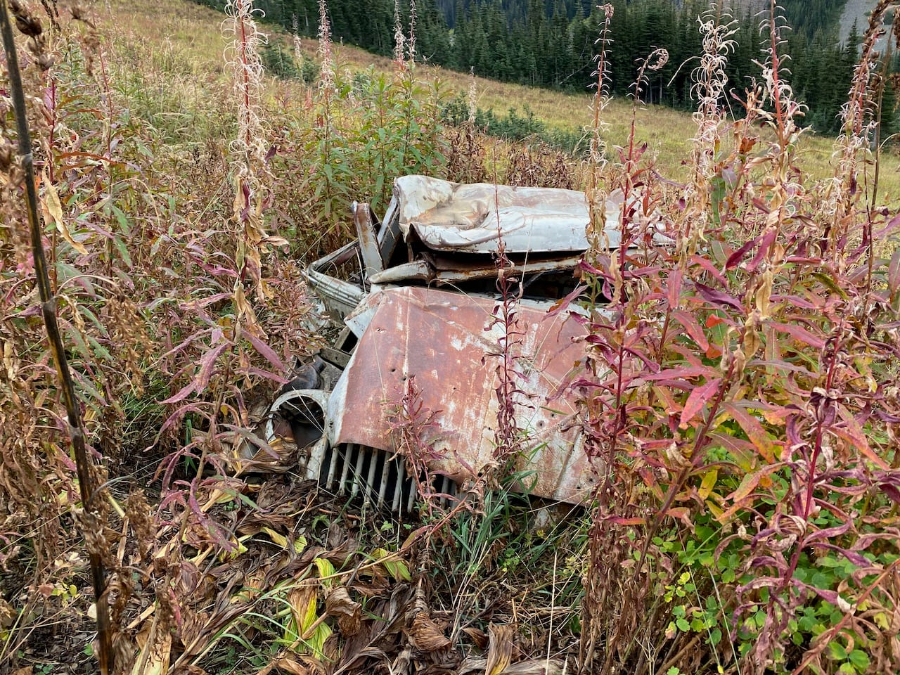 The Barkley Valley has a fascinating history. The N’Quatqua people called it “Lawlaton”, meaning “Paradise”, for its plentiful game. The valley was considered a place of spiritual significance. In the early 1960s, prospector Tom Barkley built a cabin, mine workings, and a road; only the road remains now. In the late 1960s, a religious group set up a community near the site of Barkley’s cabin and prepared to wait out the apocalypse. After a few years, they moved on, but their ruined cabins and abandoned cars can still be found in the valley. My sources for this information were the interpretive signs along the trail, and this fascinating Pique magazine article, which includes an interview with Lloyd Forman, founder of the religious community.