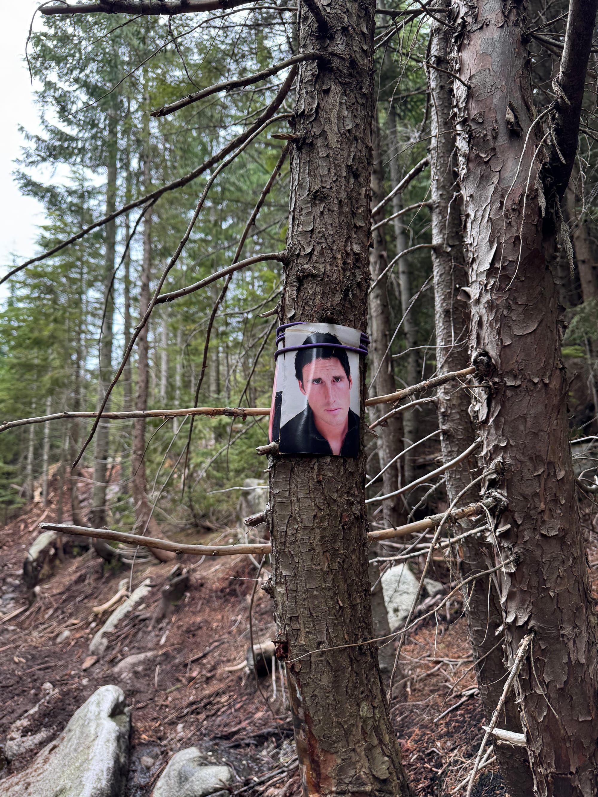 At one point a rock juts out above a cliff, seeming like it would provide the perfect view of Robie Reid. However, an inconveniently placed tree completely blocks the mountain.