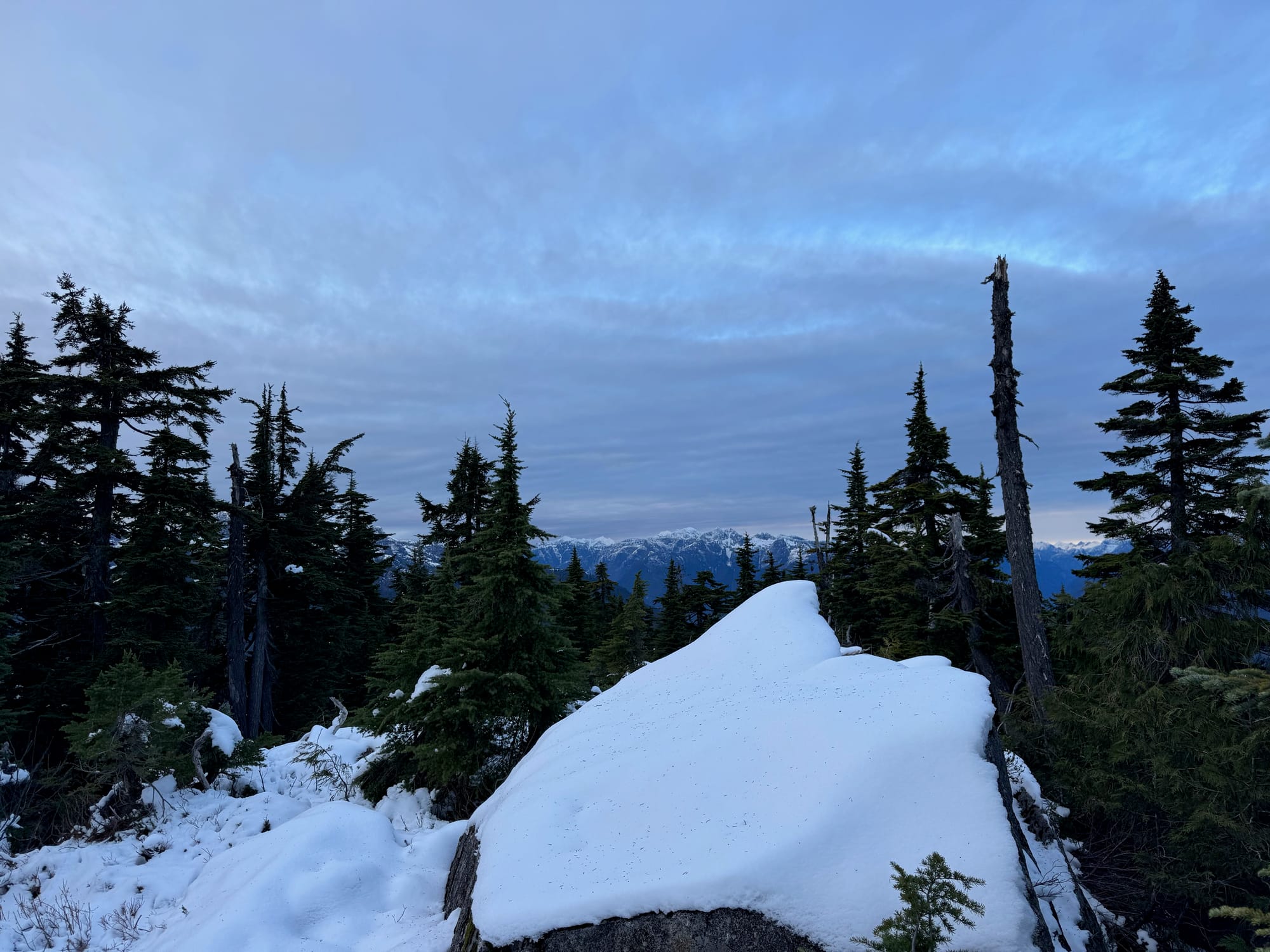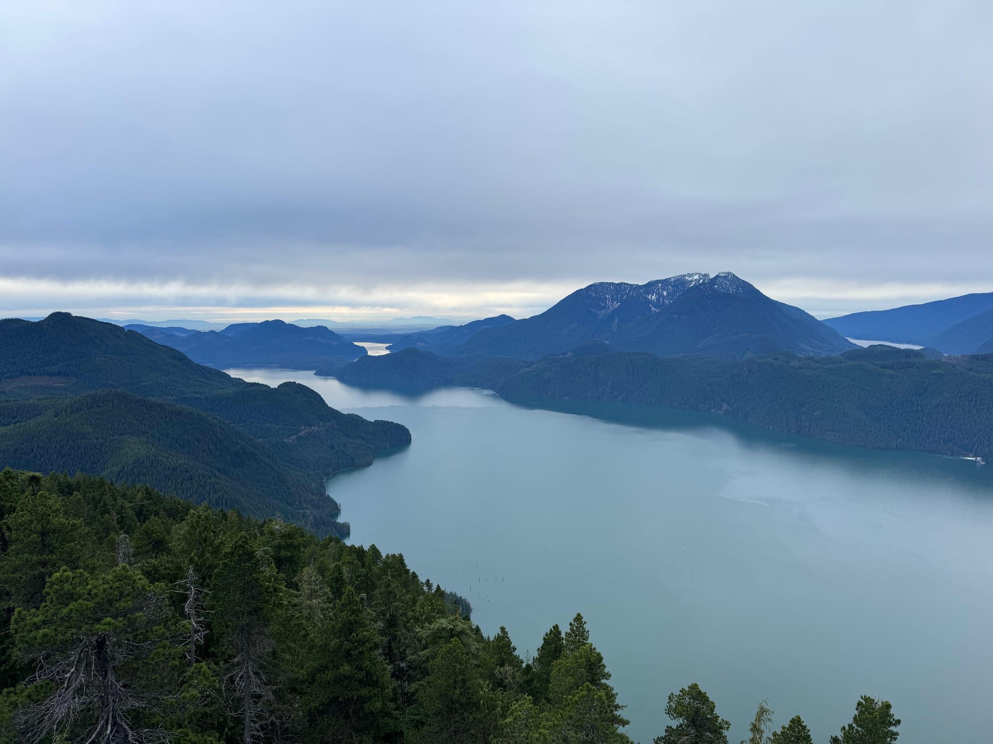 What’s especially unfortunate is that the peak is directly across Stave Lake from the awe-inspiring giants of Mt. Judge Howay and Mt. Robie Reid, a kilometre higher than this vantage point. If the summit had more alpine terrain, it would have one of the best views in this province, if not the country. However, it's below the tree line, so these views are almost completely blocked by trees. If a wildfire or windstorm ever takes out the trees I could see this peak becoming quite the hidden gem.