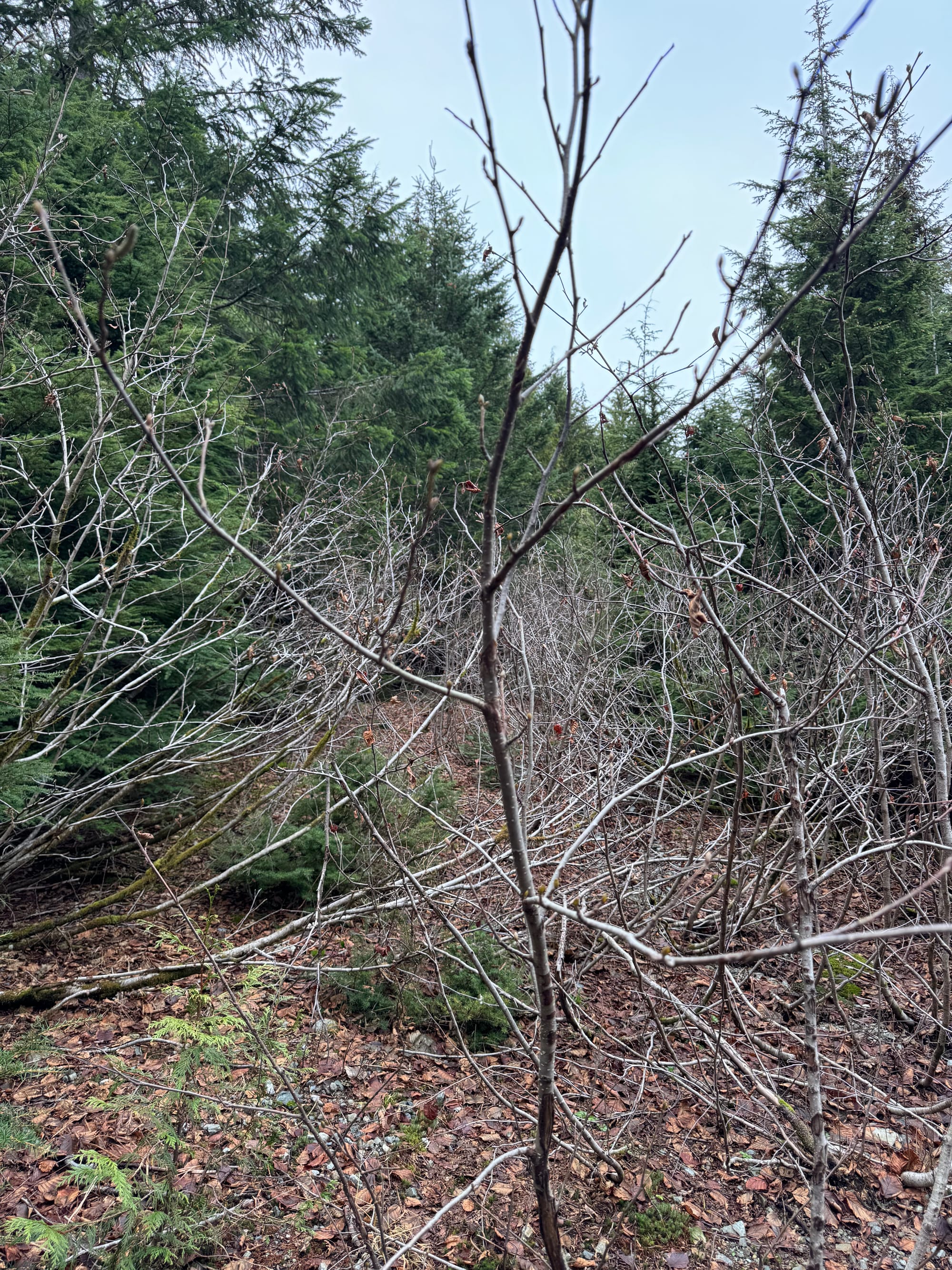 I returned to the turnoff I wanted to take. I'd missed it on the way up because it was completely overgrown with alders. The first couple hundred metres were rough, but things got better.