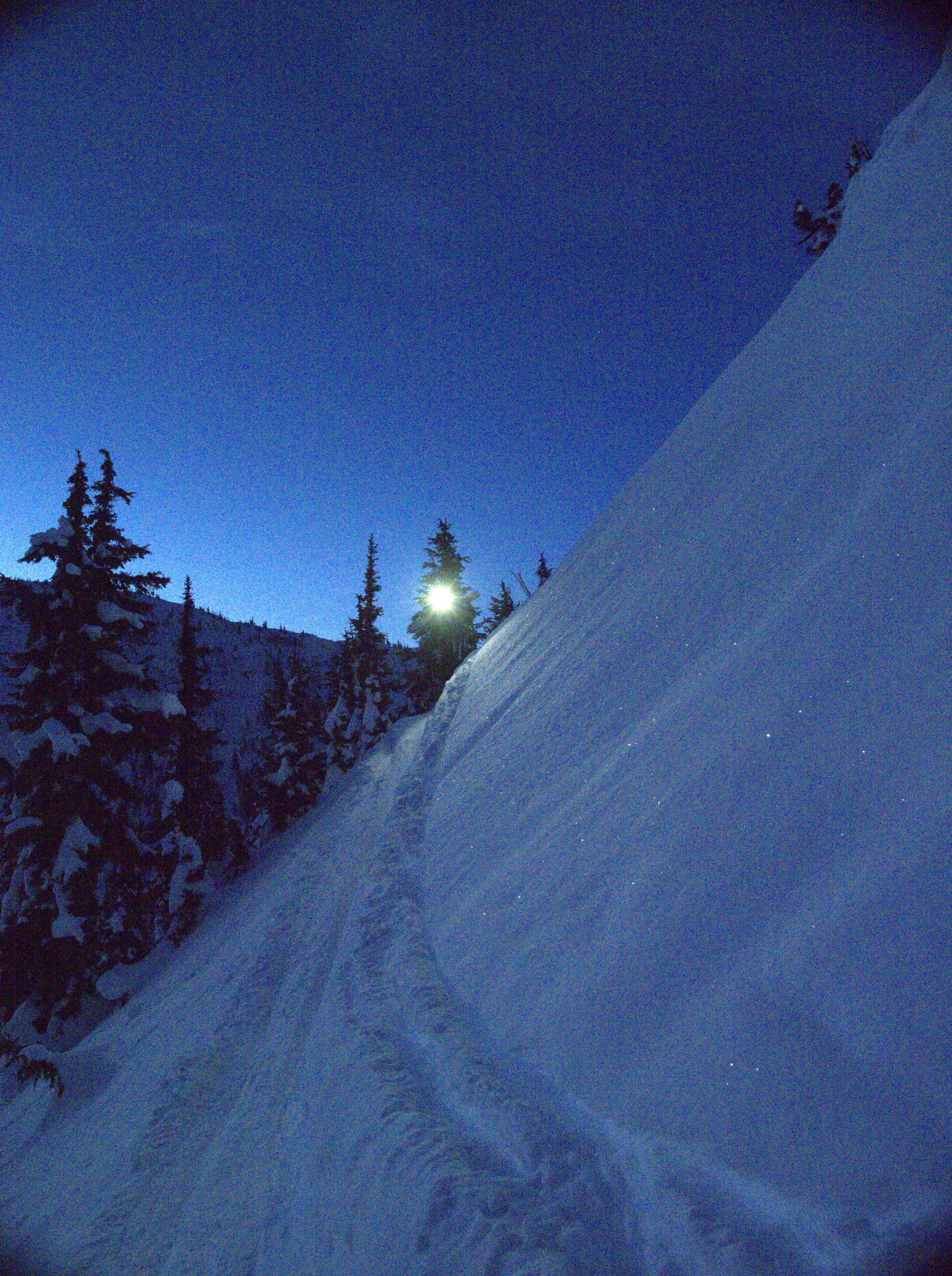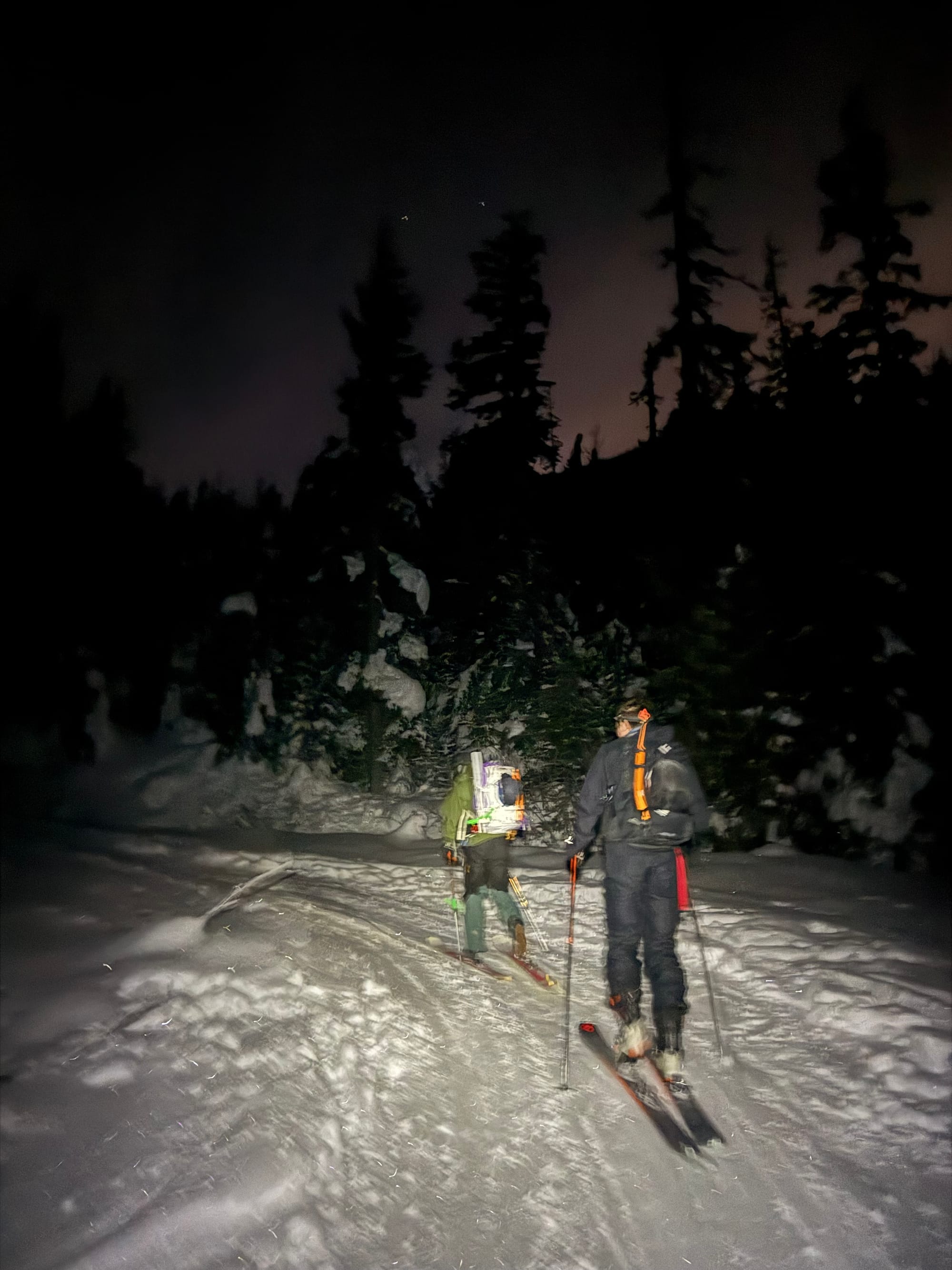 We skied back to the parking lot, disrupting a large group of locals who were sledding on the last part of the FSR.