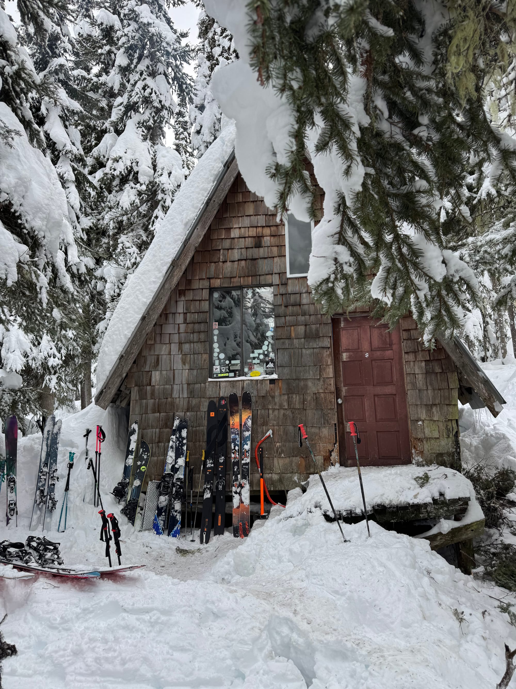 Once off the glacier, we avoided the sketchy traverse to the lake, instead just staying in the valley until we reached the Cayoosh Cabin near the end of the logging road. This route offered some great turns at first, but the routefinding quickly became annoying, with a series of cliffs we had to navigate around. Eventually we made it to the valley floor. The cabin is well-hidden and we didn’t see it until we were right in front of it.