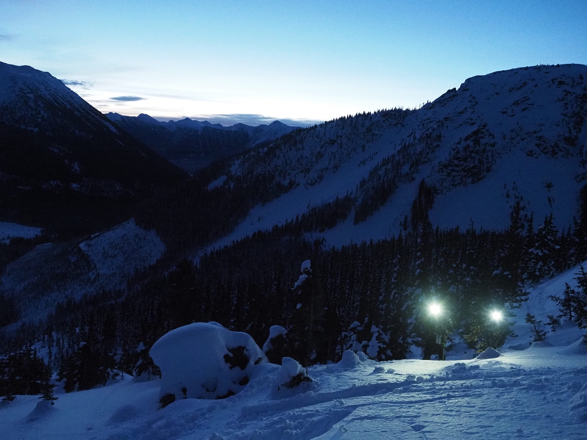 Daniel, Theo, and I met up in the evening of New Year’s Eve and drove three hours north to the trailhead, where we car camped. I’d returned from Montreal a few hours before this trip: luckily, the jet lag worked in my favour, making the 4am wakeup feel much more reasonable. It was now 2026.