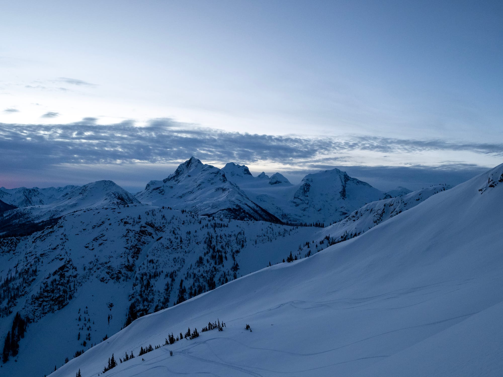 Cayoosh Mountain is a classic mountaineering objective northeast of Pemberton, offering glacier travel, steep slopes, and views across the valley to the mighty Joffre group. It’s relatively close to the Duffey Lake Road, and there is a well-travelled route most of the way, making access easier than many other nearby mountains. It is often done on snowshoes or skis in good avalanche conditions in the winter, although timing is tricky as cornices on the final climb to the ridge must be avoided. I visited Cayoosh Mountain on New Year’s Day 2026 with a VOC group, an excellent way to start the new year! There are a variety of routes up Cayoosh, but this trip report describes the standard route from the east, via the Armchair Glacier.