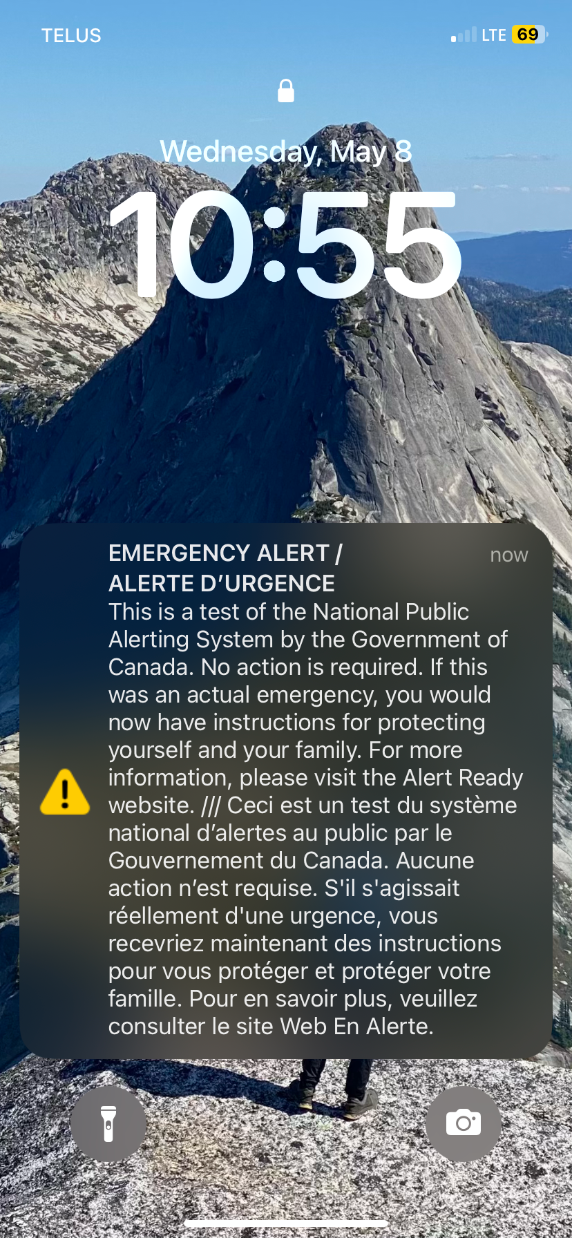 From the summit, I admired the views of the Tantalus Range and Garibaldi Park. While there, the government decided to test their emergency alert system, giving me a surprise.