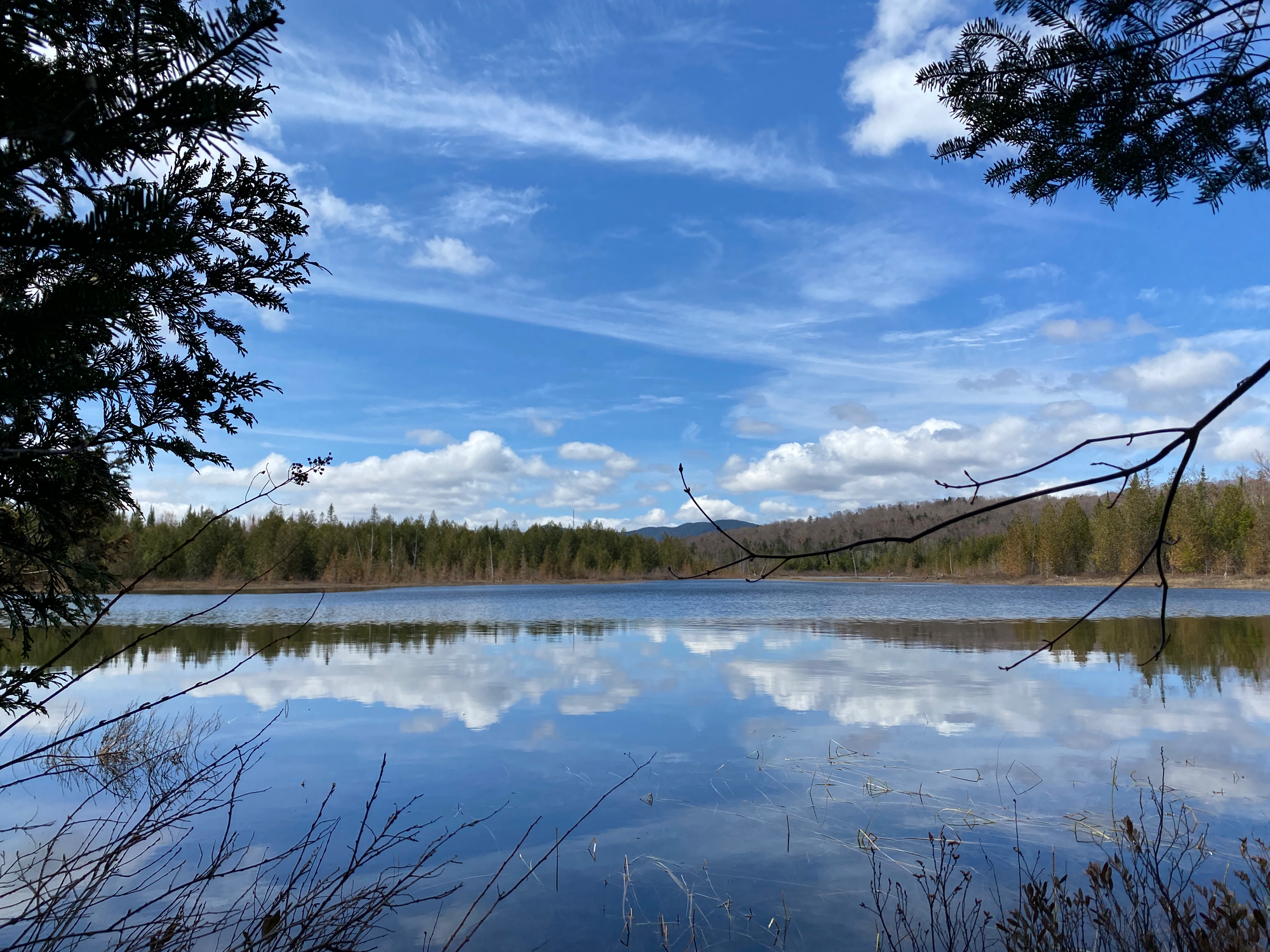 The first few kilometres were on an old logging road with plenty of boulders to hop over. There were a couple small creek crossings but we stayed dry. We reached the Slide Brook campsite, the turnoff to the Macomb Slide, and kept going north. We passed another campsite and a short detour to Dix Pond, then headed northeast on the Beckhorn trail at a Y-junction.