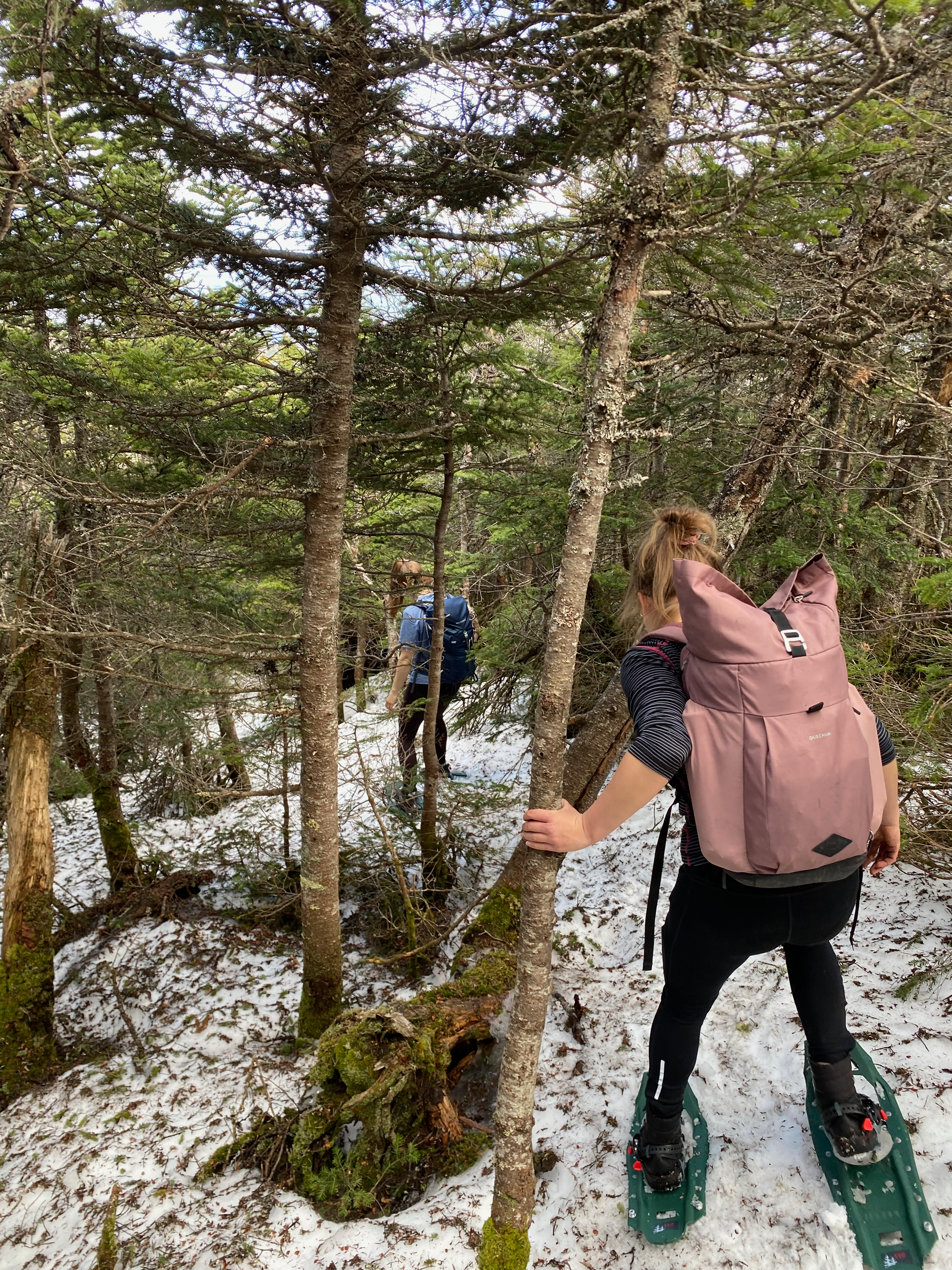 The Beckhorn trail was a long grind. Like most Adirondack trails, there were many rocks and roots to climb over, and at some points the trail became a creek bed. Patches of snow started at 1150m but we made it to the top without using our snowshoes. As the trail gained elevation, it became steeper, and there were several smaller scrambling sections.