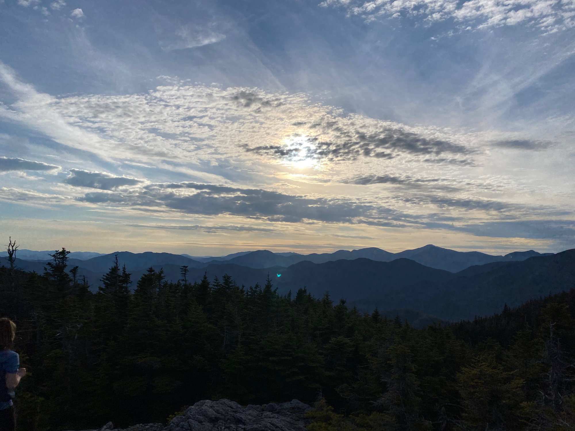 One last posthole-fest ensued as we ascended Macomb. The actual summit is in the trees but great views can be found to the west, at the start of the Macomb Slide trail. We caught the first few minutes of sunset, then quickly left to ensure sme light for our descent.