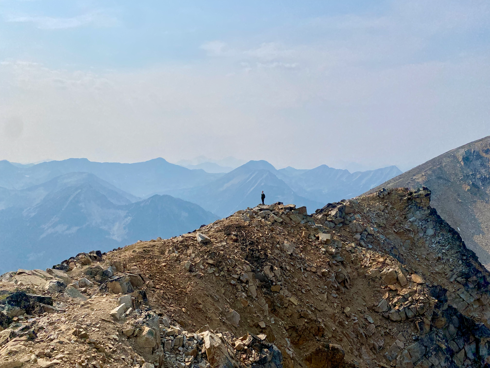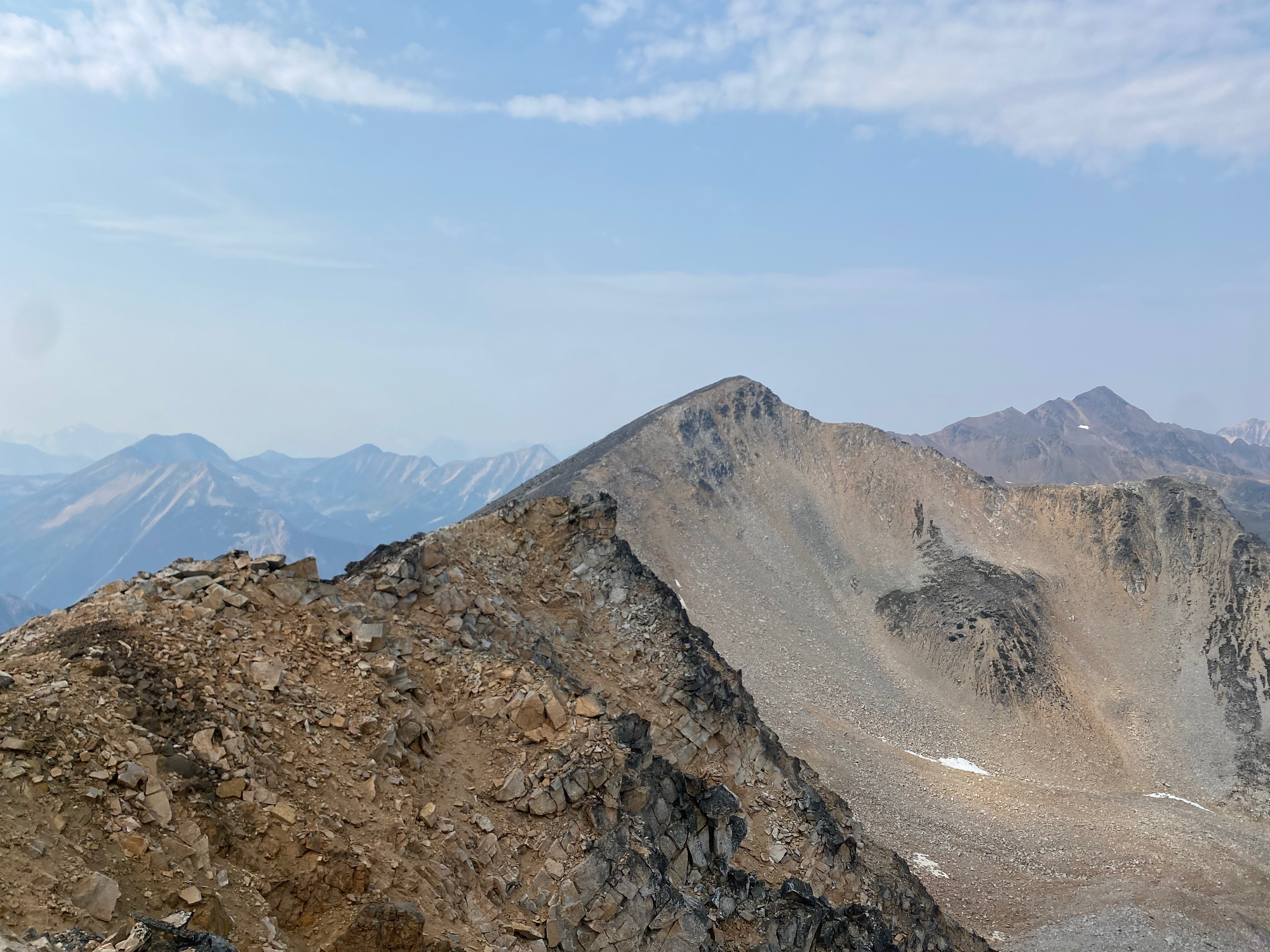 The true summit was about 1 kilometre further east. The ridge between the two sloped somewhat gently to the south and presented no exposure or scrambling. As expected the views were great. The ridgelines continue for miles on either side of Gott Peak and I spent some time thinking about future multi-day ridgeline adventures.