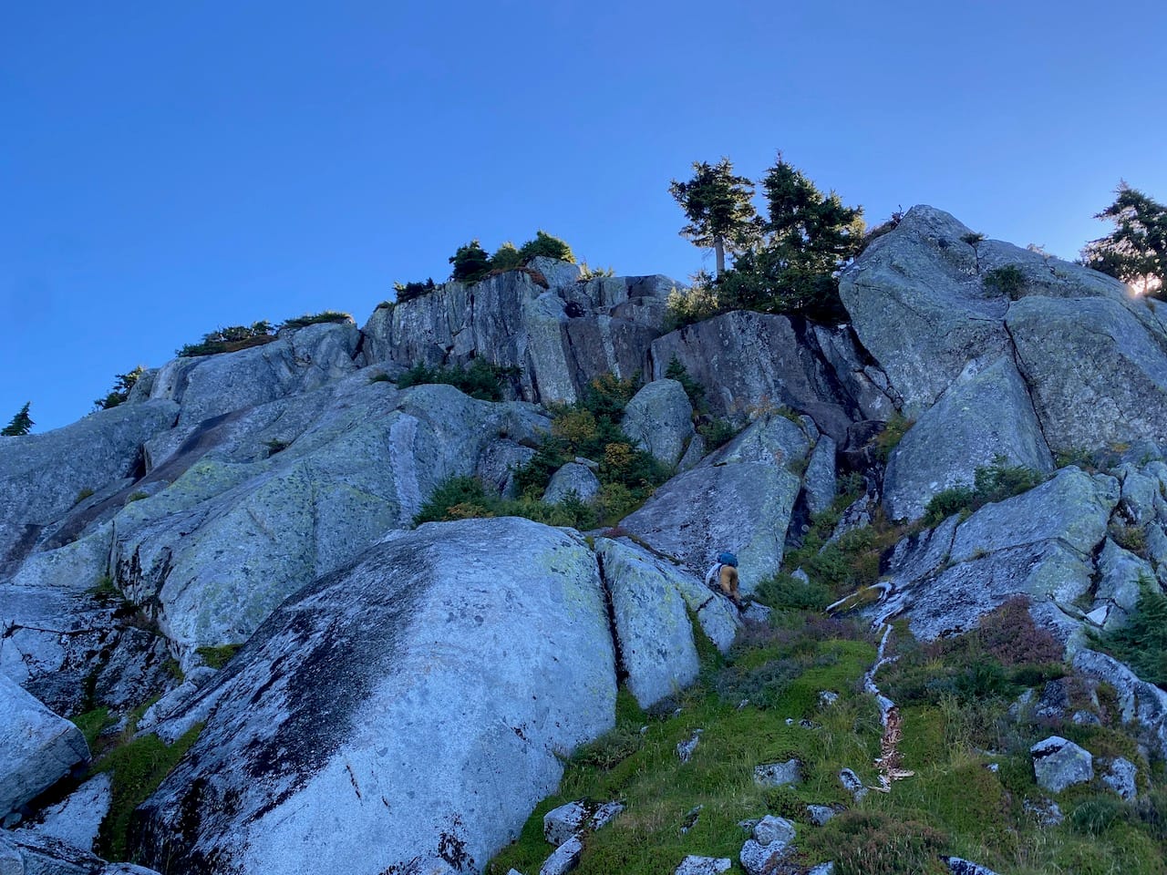 We reached the top of the final scramble just past sunset and still had enough usable light to get down safely. Unlike the previous night, we were the only ones at the campsite. As I set up camp, I heard rustling in the bushes nearby. We were exhausted and didn’t think much of it.