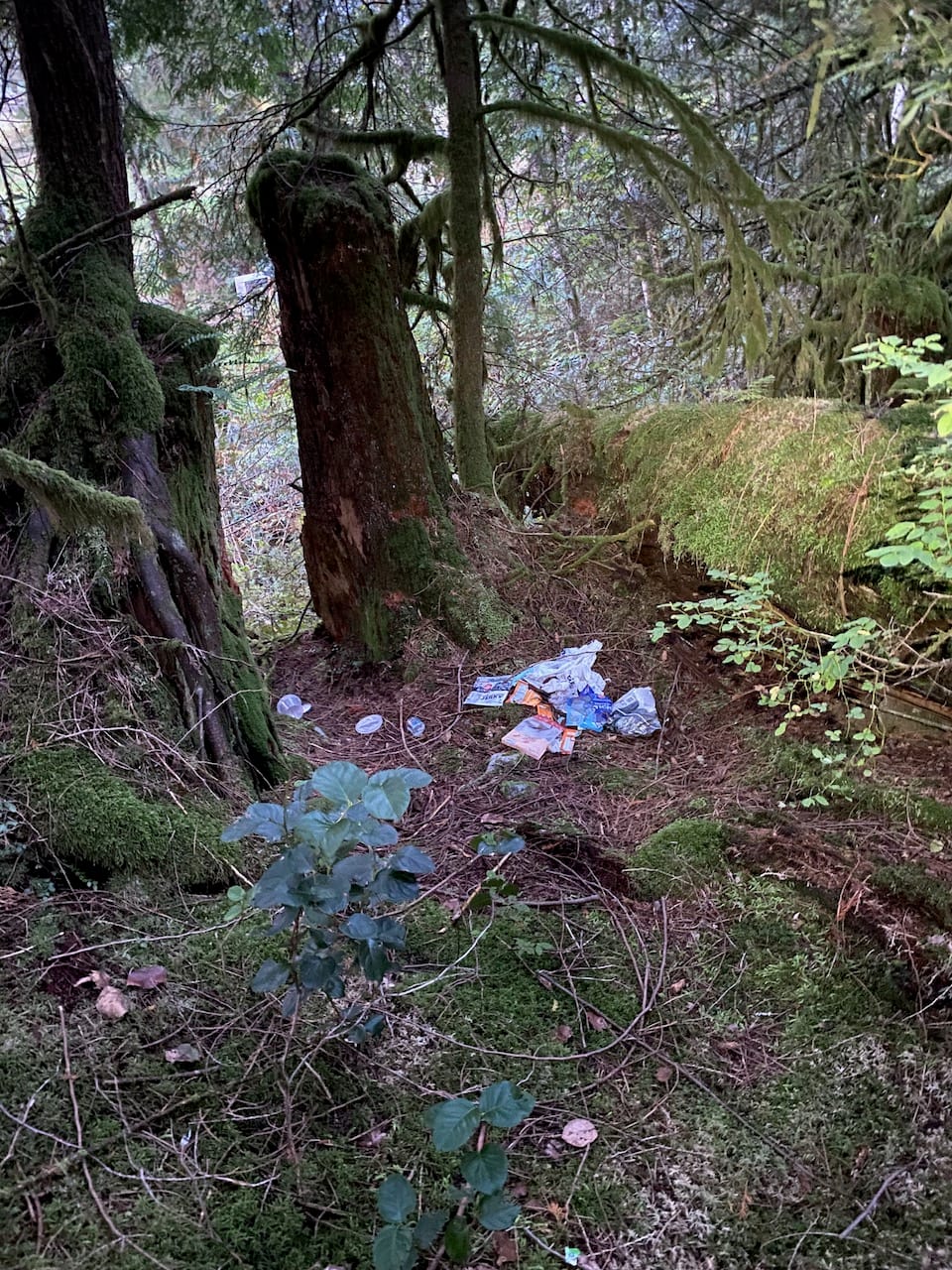 We debated whether to clean up the trash but we were concerned about angering the culprit. Just then, the largest bear I’ve ever seen waddled out of the forest!