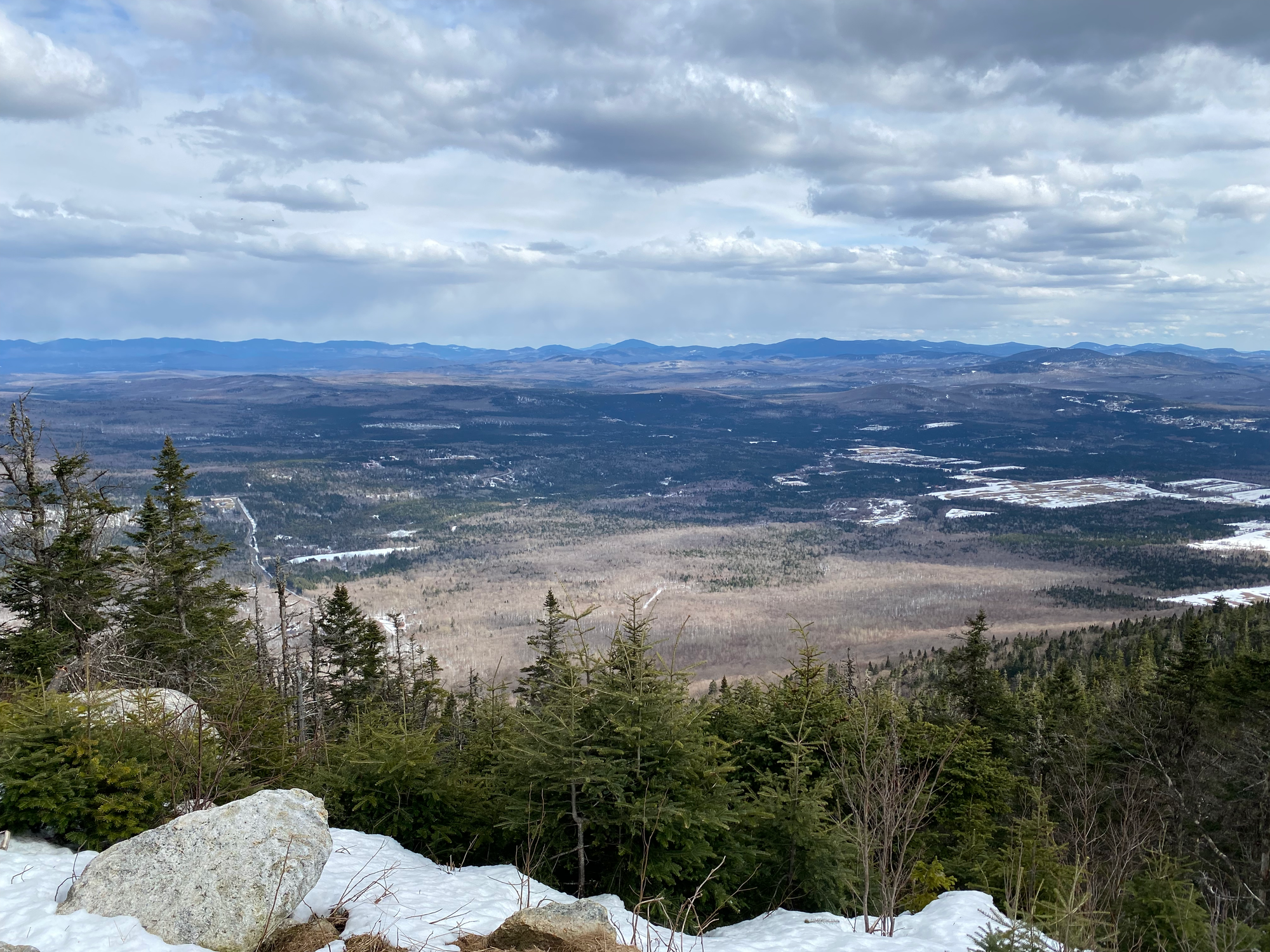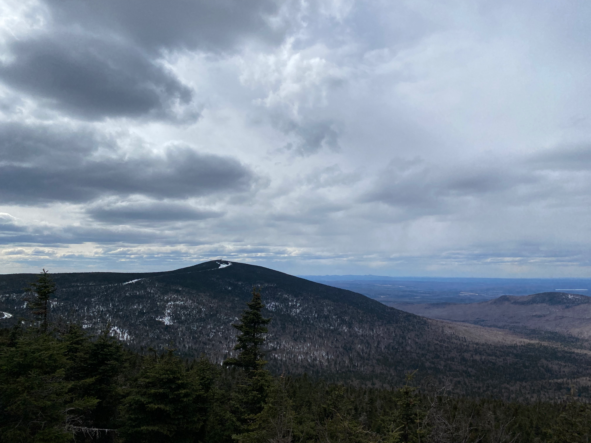 Finn and I messaged the MOC listserv and many people signed up. In the end, we had nine people, which was worrying, but the trip went well anyway. Our original destination was Mont-Gosford (the highest mountain in southern Quebec) but a quick call revealed that all their trails were closed for the spring thaw season (this isn’t on the SEPAQ site or any tourist websites in any language, you’ll have to phone the park or check sentiersfrontaliers.com). We quickly pivoted to Mont-Megantic, which was totally OK with hikers, although they recommended snowshoes.