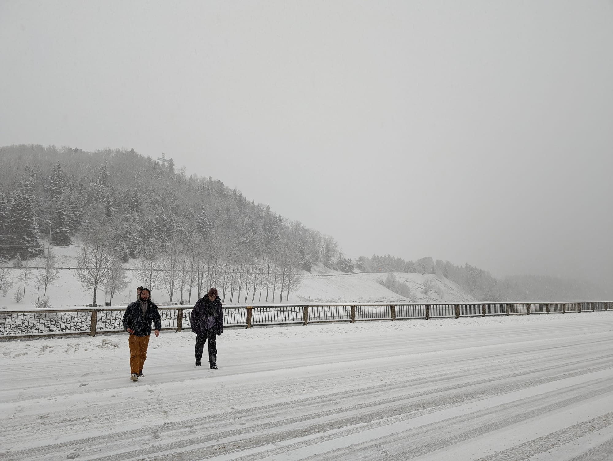 Heavy snow began to fall about twenty minutes from the hotel. Within seconds the road was covered. We arrived at La Malbaie around 1:30 a.m., checked into the hotel, and crashed.