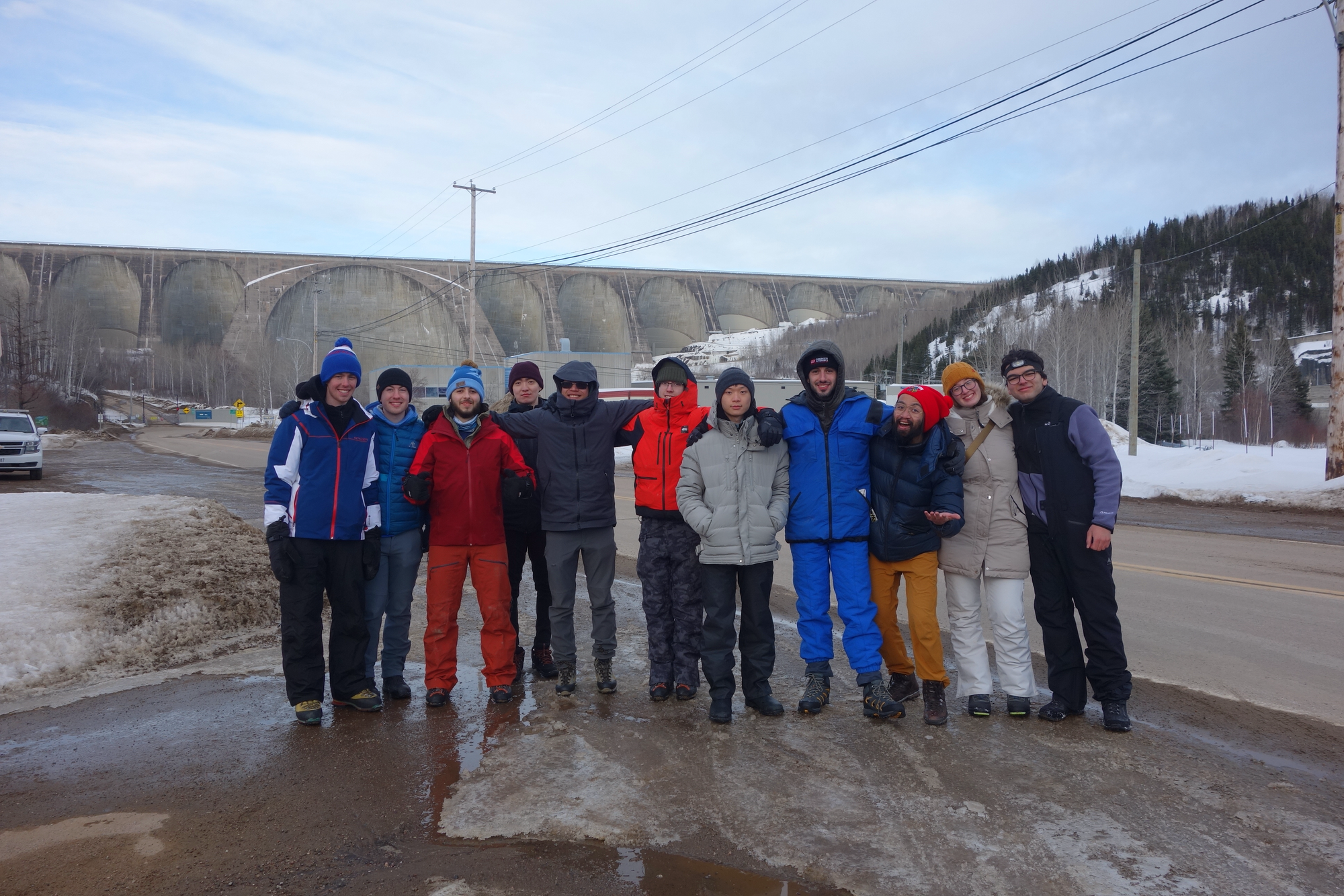 On another trip to the gas station, the helpful cashier and several passing truckers told us that the road was indeed very icy, and that it was actually closed past Relais-Gabriel (100km north of Manic-Cinq, 21km south of our destination). It seemed like our cars would never make it past Manic-Cinq, especially since only one had four-wheel drive. Some of us came up with an intriguing plan: we would leave the cars at the parking lot past the dam, split into four groups, and hitchhike to the station. It would be most people’s first time hitchhiking and we were excited about the idea.
