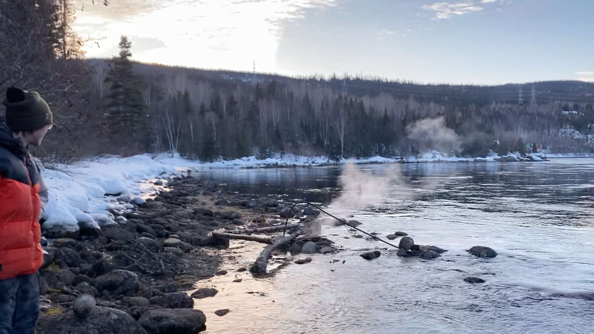 The afternoon was mostly spent at camp, with a side quest to scout out the dam and test out the Tesla’s built-in light show. Anything off the main road was very icy. Z. went for a 12km hike along the road and could not be stopped.