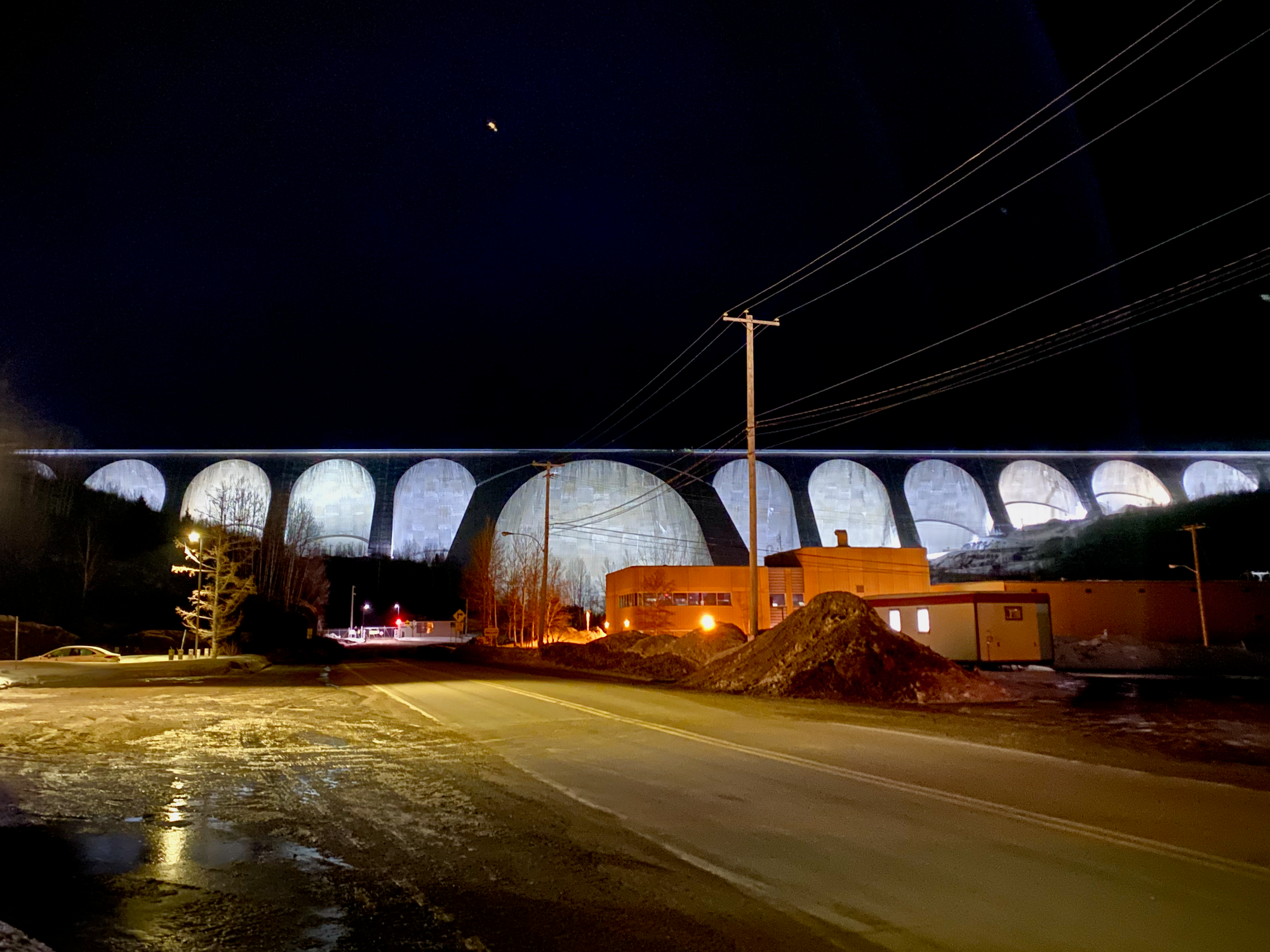 The dam was lit up at night, which was very impressive. Very few non-Hydro-Quebec workers get to see that in the winter!