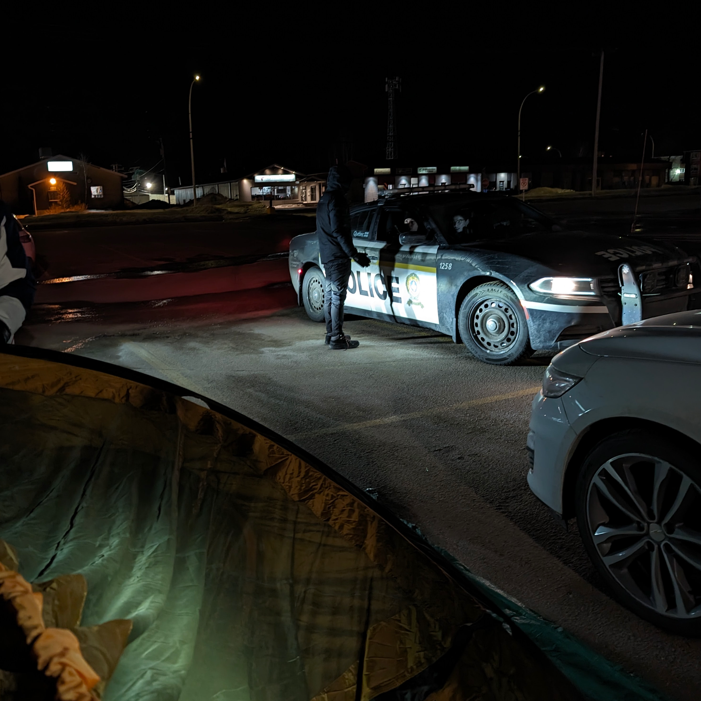 As a last resort, someone suggested a supermarket parking lot in the town of Baie-Comeau. Given the late hour and sleep deprivation, we agreed. After we arrived, the police were called, but they left when we explained that we’d leave early the next morning.