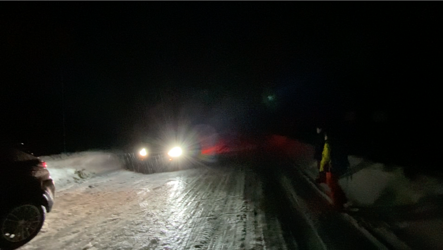 It became apparent that we wouldn’t have the charge to leave Manic-5 anytime soon. Also, after last night’s cold temperatures, several people were concerned about camping somewhere as remote as Mont Harfang in colder conditions. This was several people's first winter camping experience. On top of this, the Tesla's driver was not aware that the road wasn't paved for the next 100km. A long and heated discussion ensued; we decided to stay in the Manic-5 area for the night and re-assess the next day.