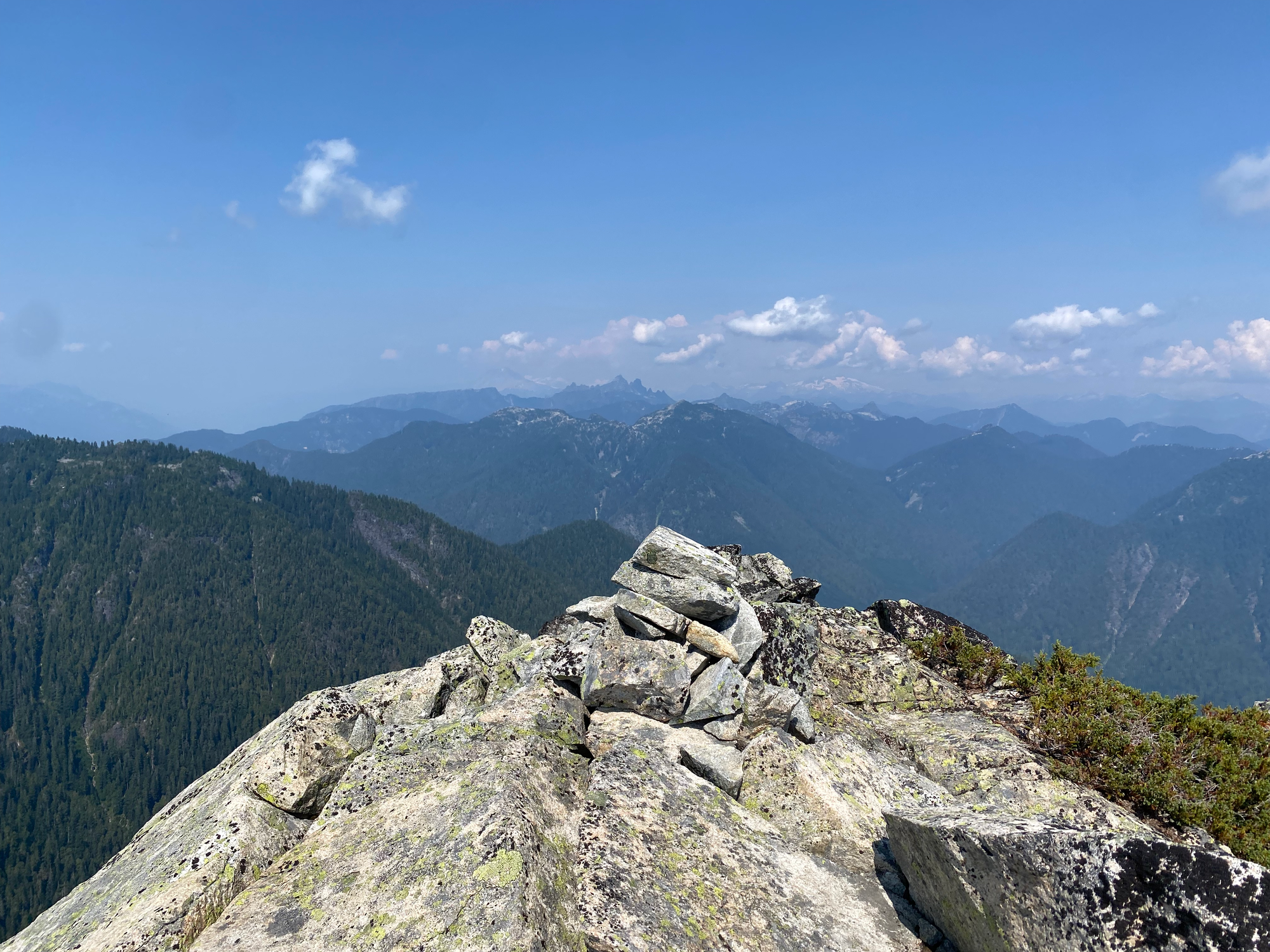 Mount Hanover, one of the peaks described in The Glorious Mountains of Vancouver's North Shore, is one of the more obscure summits on the Howe Sound Crest. It's very visible from its neighbour Mount Brunswick, and the Howe Sound Crest Trail passes below it, but it's rarely visited. Reaching the peak requires some off-trail navigation and a class 3/4 scramble up one of two gullies, with the westernmost (left) generally being considered easier.