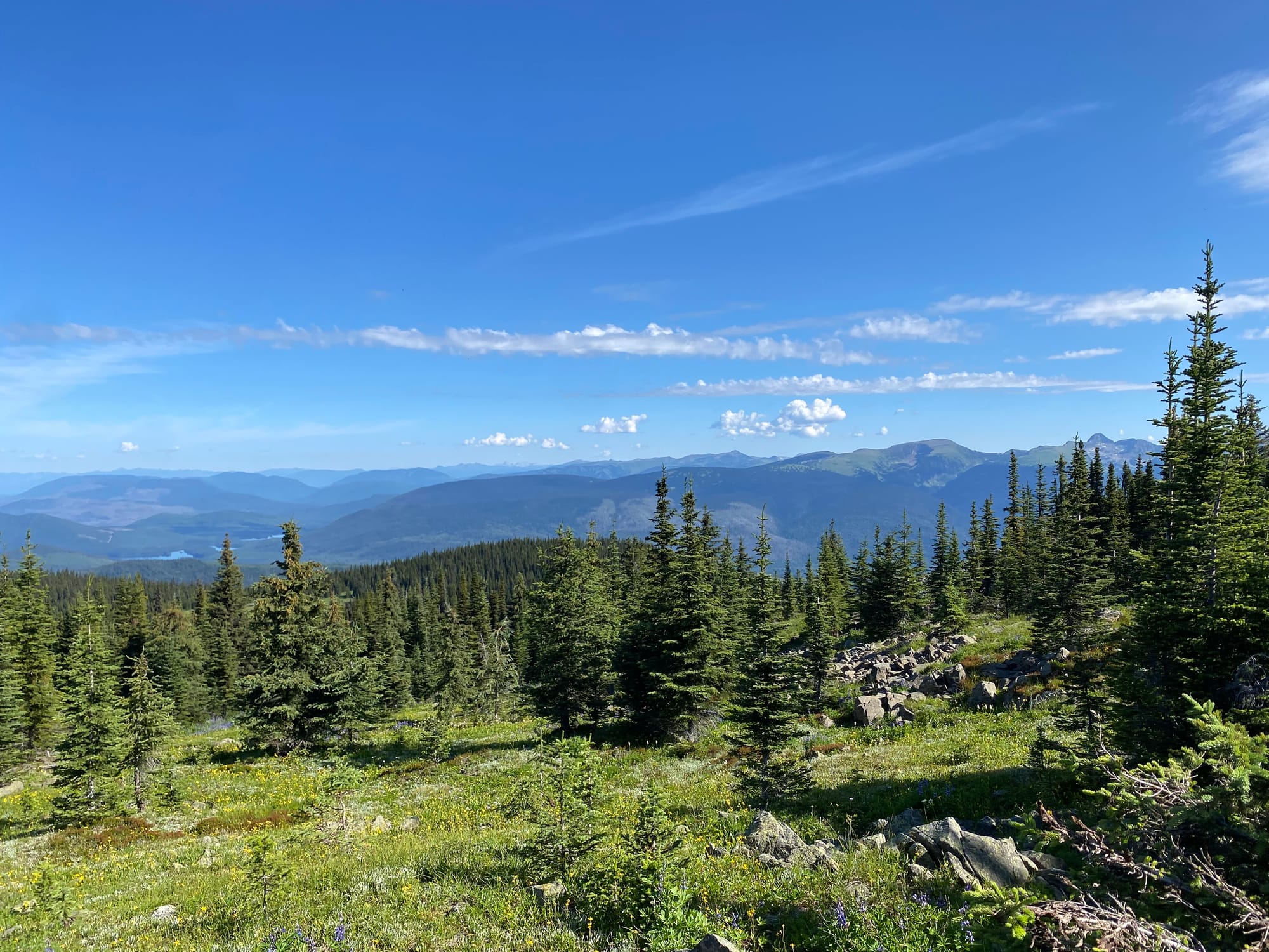 After the cut block ended, I kept walking through the forest, gaining a few hundred vertical metres. This section was pretty tedious with lots of deadfall.