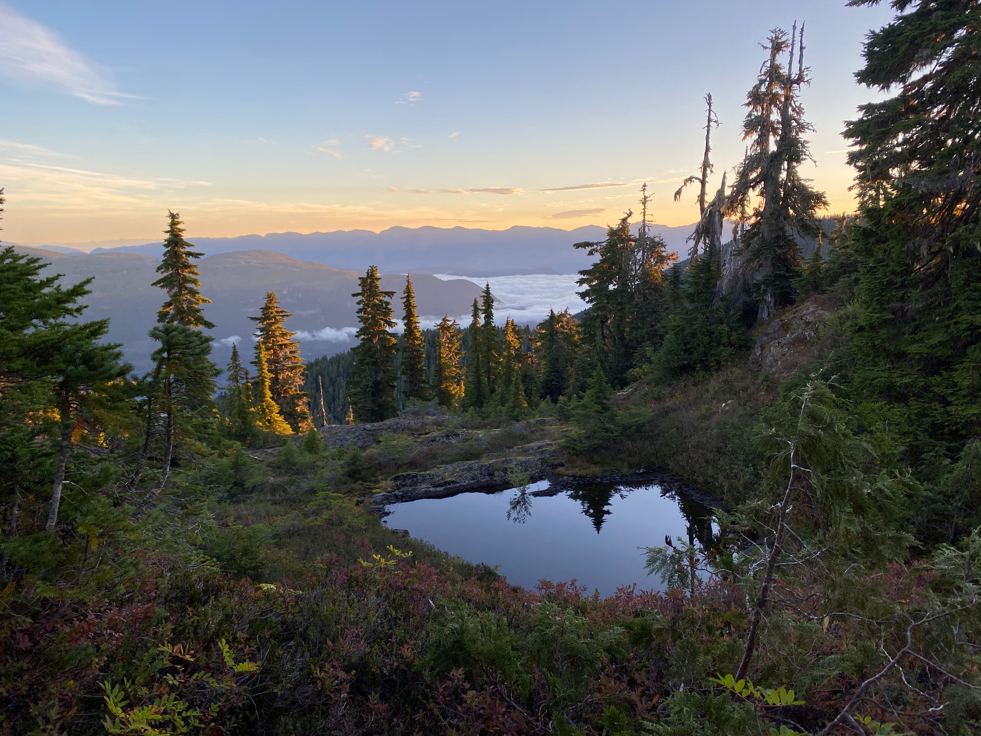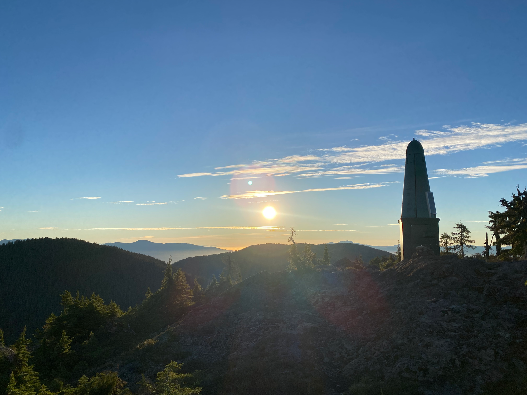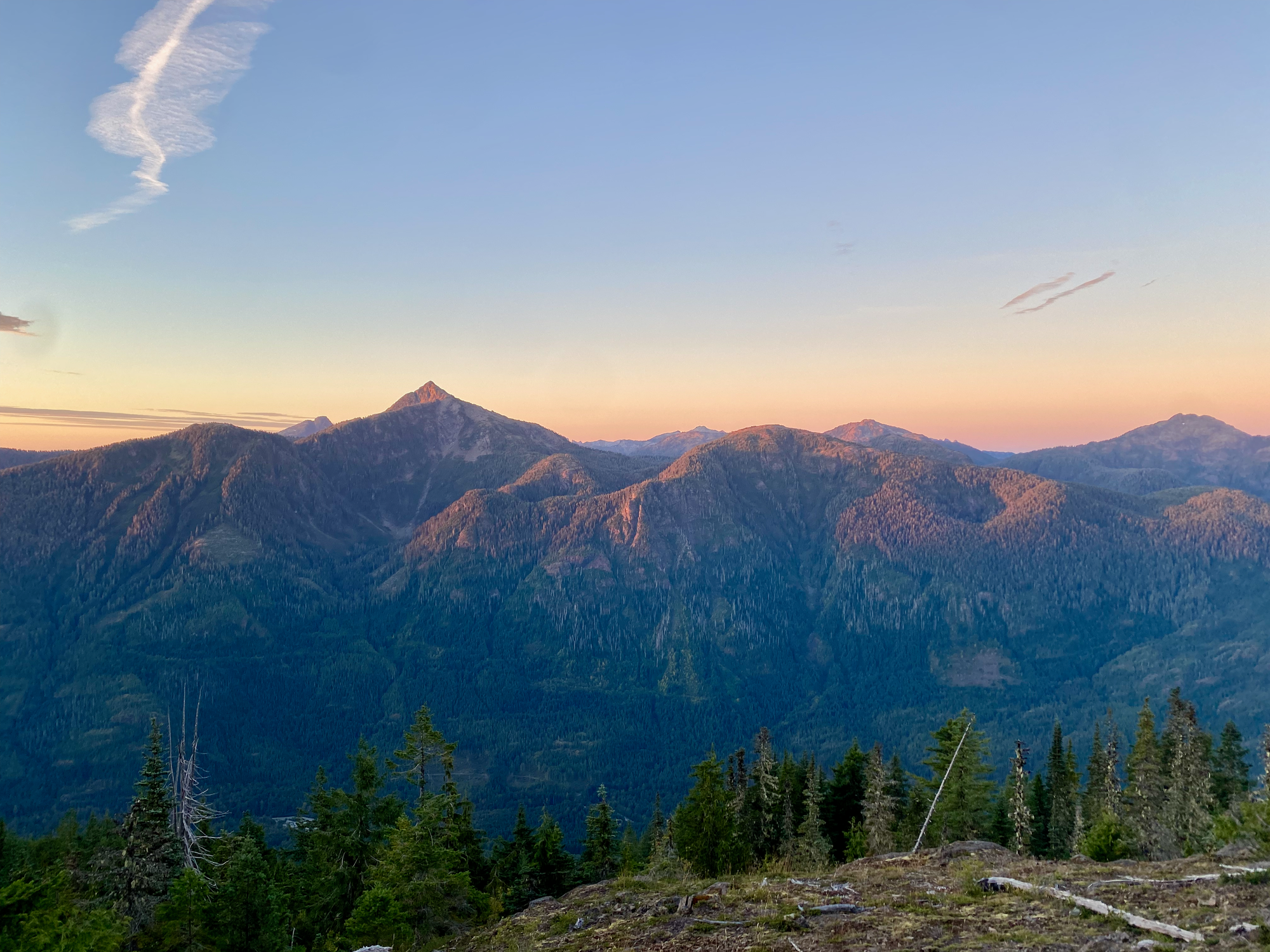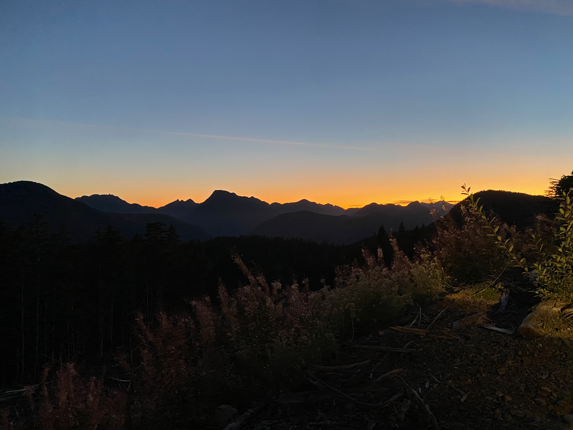 I car camped at the furthest drivable point and began hiking early in the morning. After leaving the logging road, the trail climbs to the ridge through the forest. It’s extremely well marked and is maintained by local volunteers (thanks!). Most of the ridge is old-growth forest. I caught the last remnants of sunrise at the first of many bluffy viewpoints.