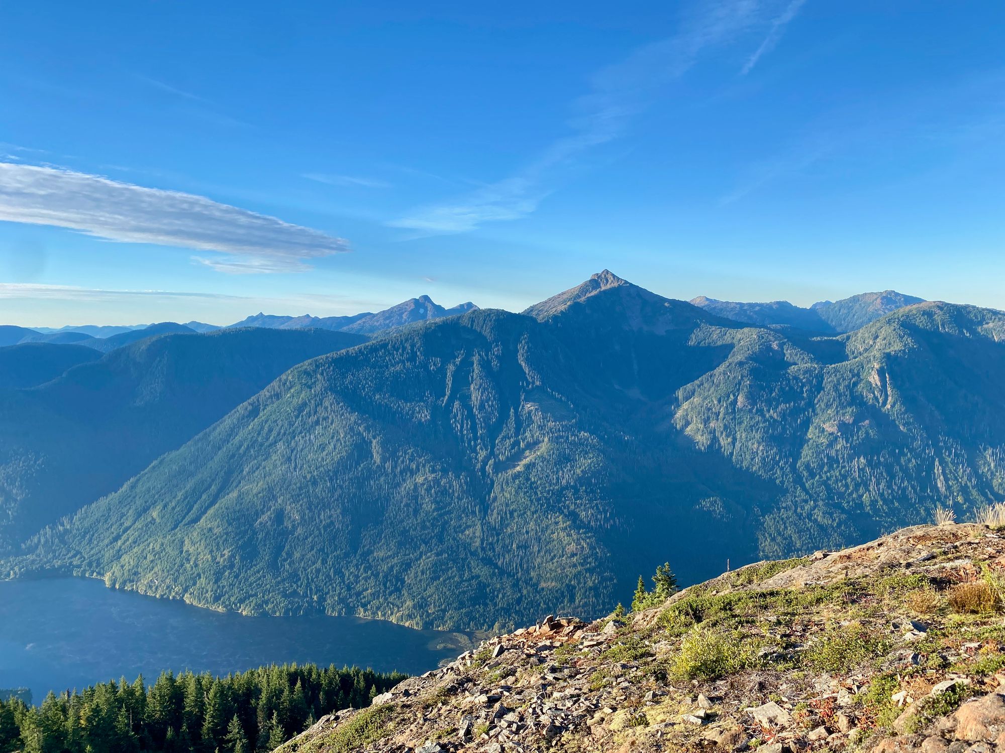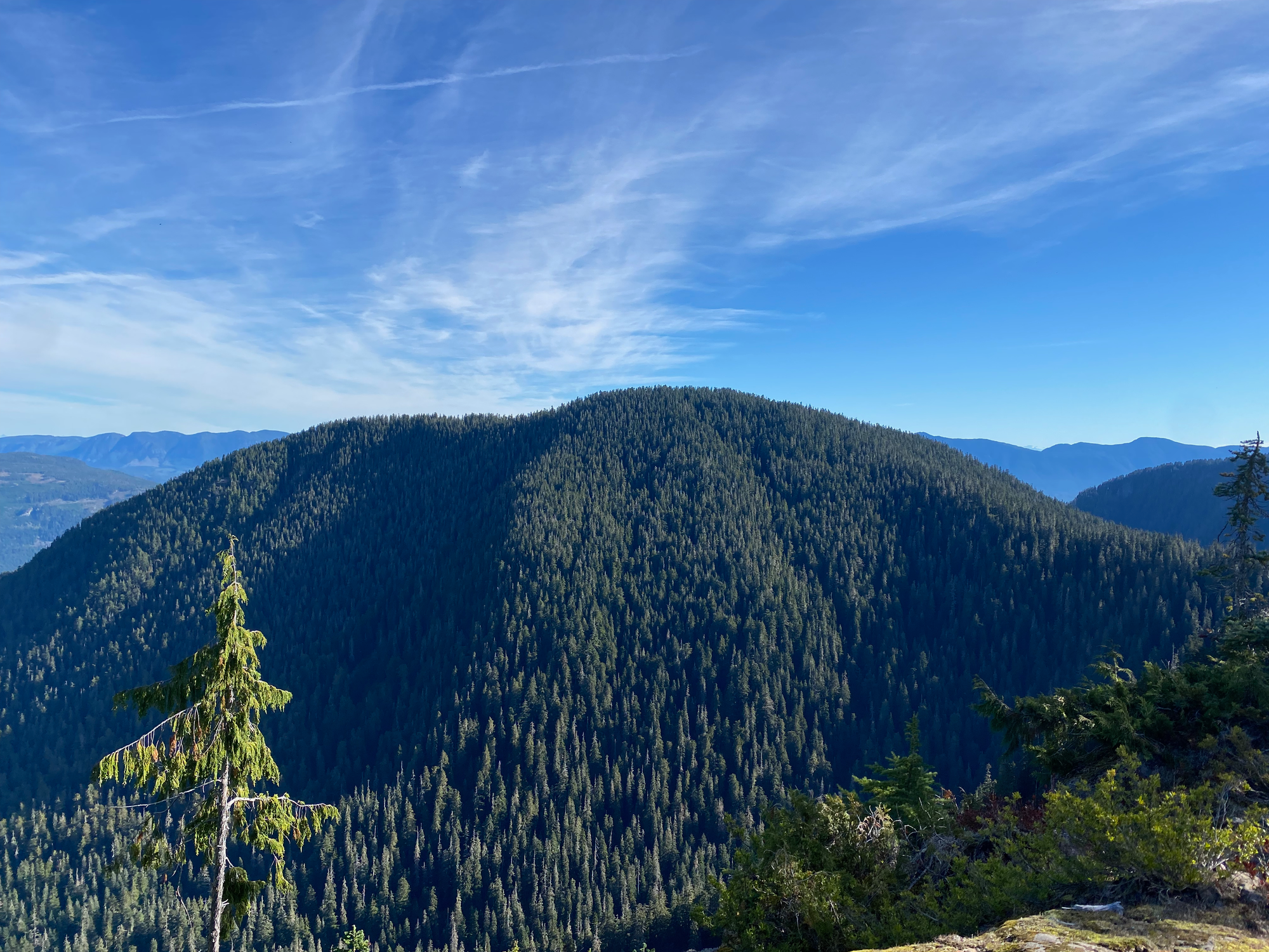 These three mountains form a long ridge between Sproat and Great Central Lakes on Vancouver Island. Access is from the Pacific Rim Highway, about a third of the way from Port Alberni to Ucluelet. Porter and Iron offer excellent ridgeline views of the mountains of the central island. Great Central has no views or trail, but it’s 3 metres higher than Porter so it’s quite prominent. I used the Alltrails route and Matt J. and Matteo S.'s Peakbagger trip report for navigation. I’d recommend Porter and Iron as a hike, trail run, or snowshoe, but Great Central would only really be enjoyable for peakbaggers.