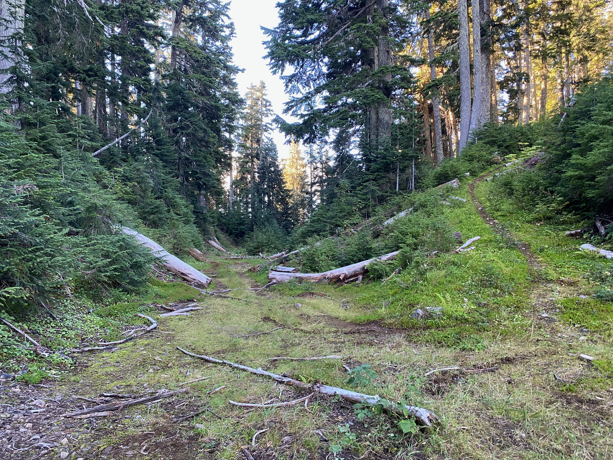 From there, the trail descended to the east before connecting to a recent quad track. There’s another system of logging roads further east and I’m guessing the trail and/or track link up with that. I had no time to investigate, as Great Central Peak beckoned to the north.