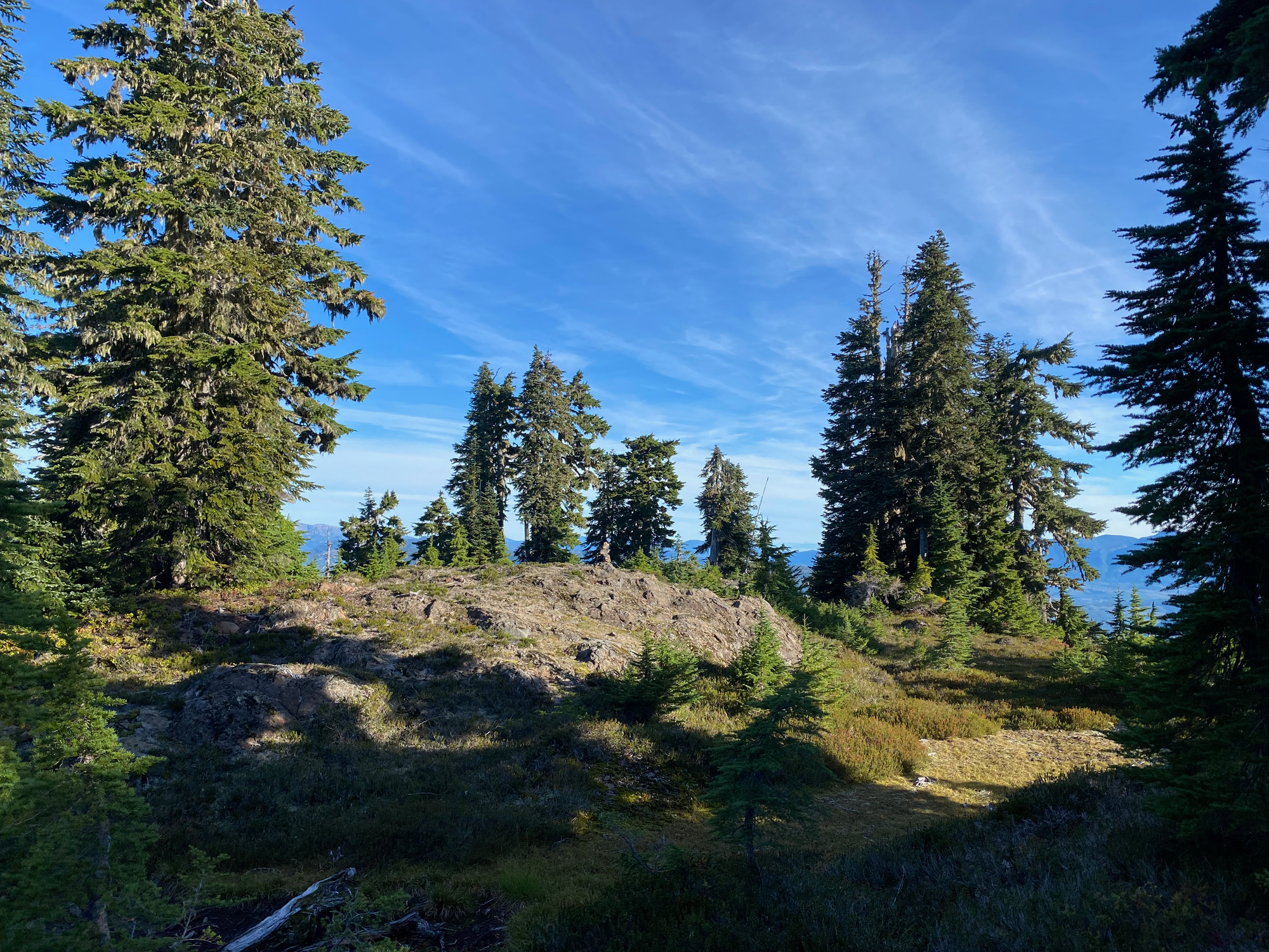 Iron Mountain was a short descent and ascent from Porter. It also offers great but not panoramic views. A bluff to the east of the summit, with front-row seats to Klitsa Mountain and area, would be a good campsite or picnic spot.