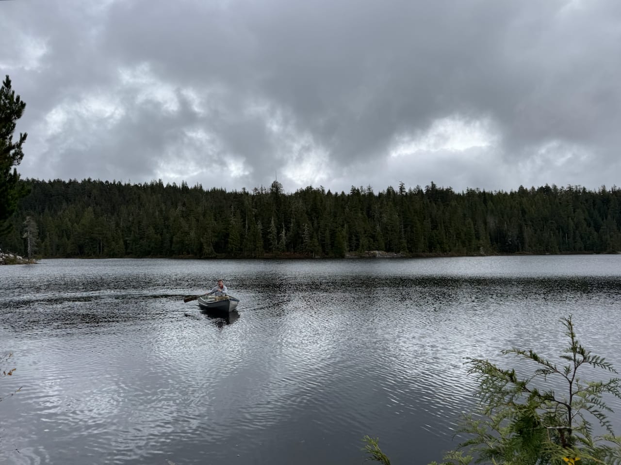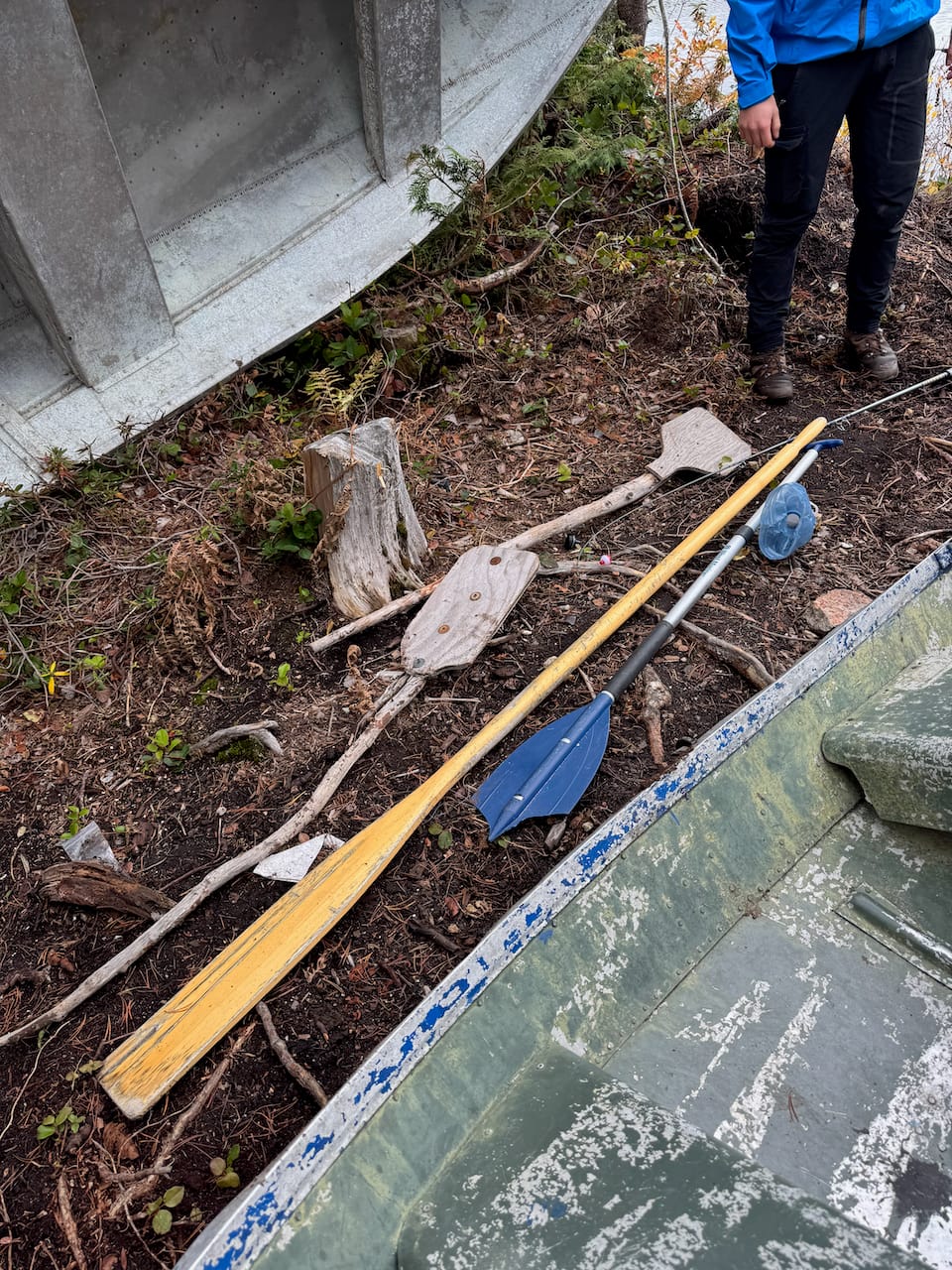 We returned the way we came, stopping for a long break at the lake. There is a rowboat here and an act of piracy might have taken place.