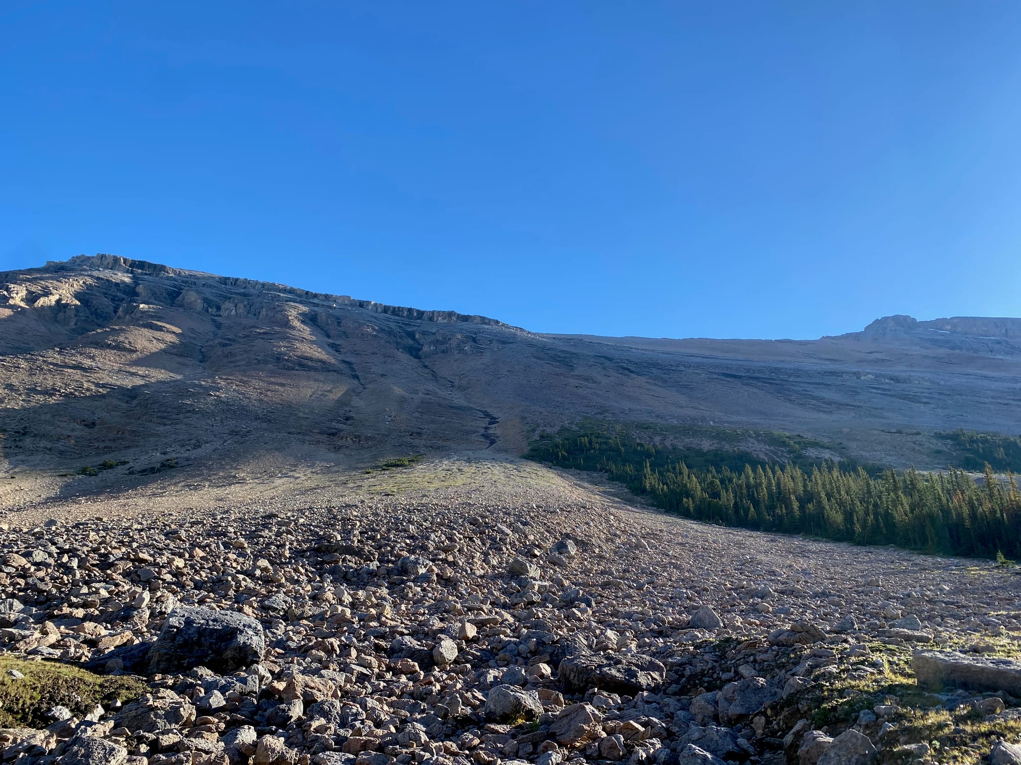 I was hiking the Great Divide Trail and had some time to kill in the area due to my permit schedule. I spent some time looking at maps to find potential side trips, and noticed Mount Stewart rising directly above the GDT. The GDT is nice, but there aren’t enough easily ascendable peaks along this section; this trip would fix this issue. I came across a trip report from 2015 on explor8ion.com (https://www.explor8ion.com/2015/09/12/stewart-mount/) which described the one class 2 / 3 route up this peak. The weather was on my side so I decided to go for it.