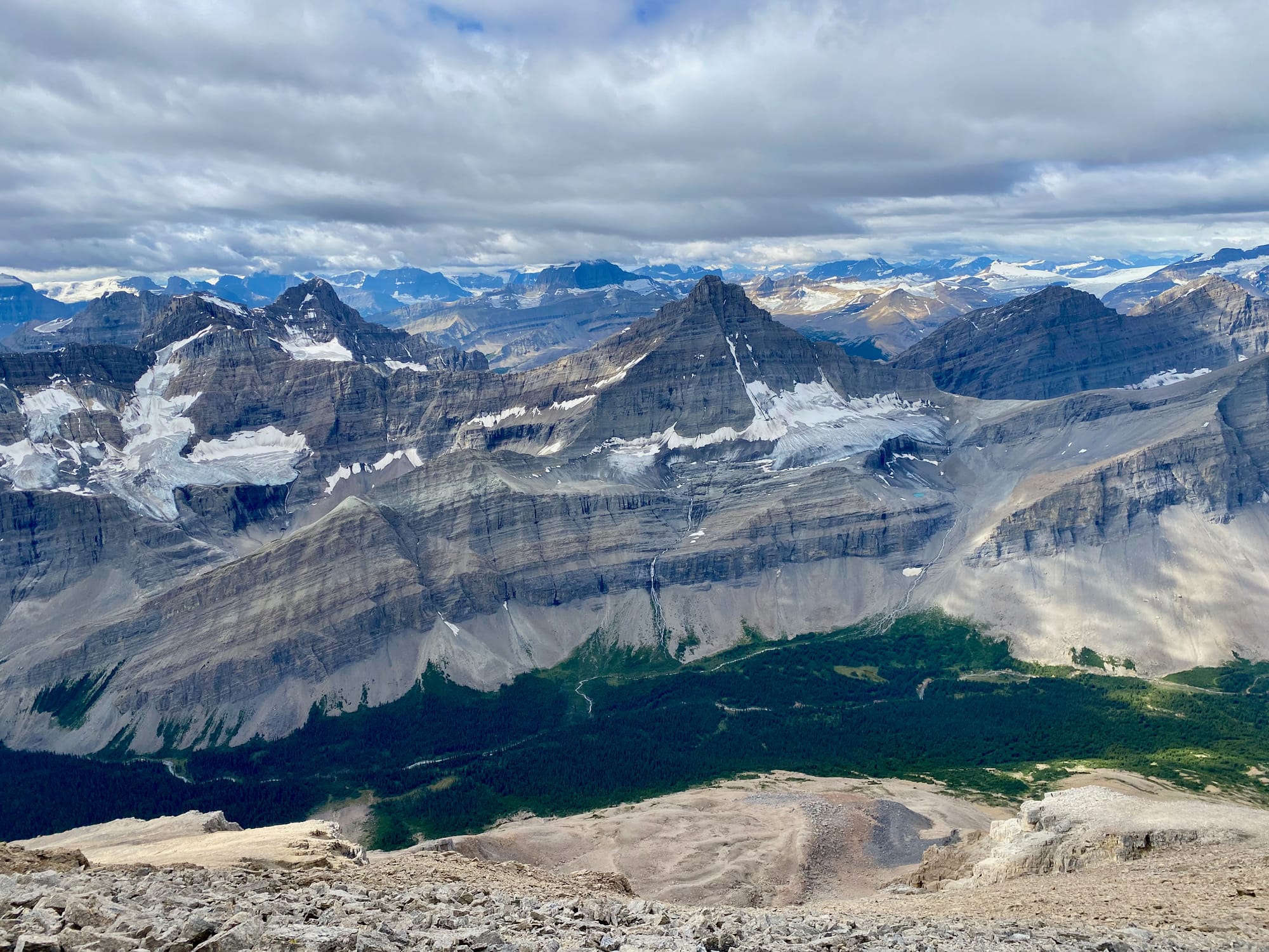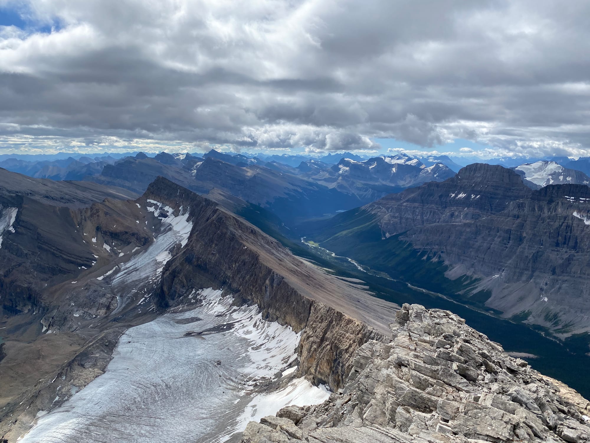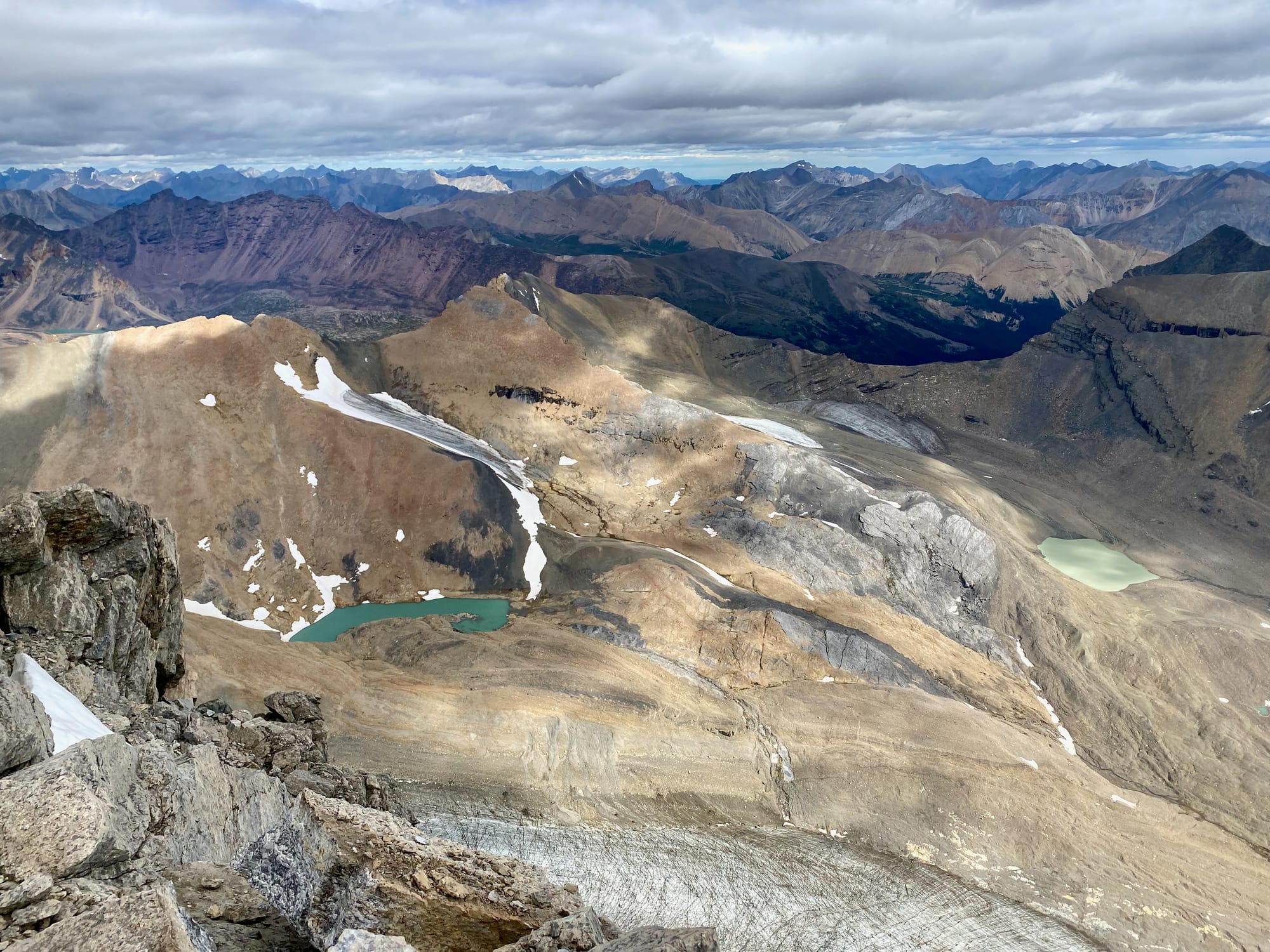 I’d been in the Rockies for almost two weeks but this view still took my breath away. It really put my GDT trip into perspective: I could see almost all the ground I’d covered since leaving The Crossing, and much of the terrain I'd have to cross in the next few days to get to Jasper. I relaxed on the summit for over an hour, taking everything in.