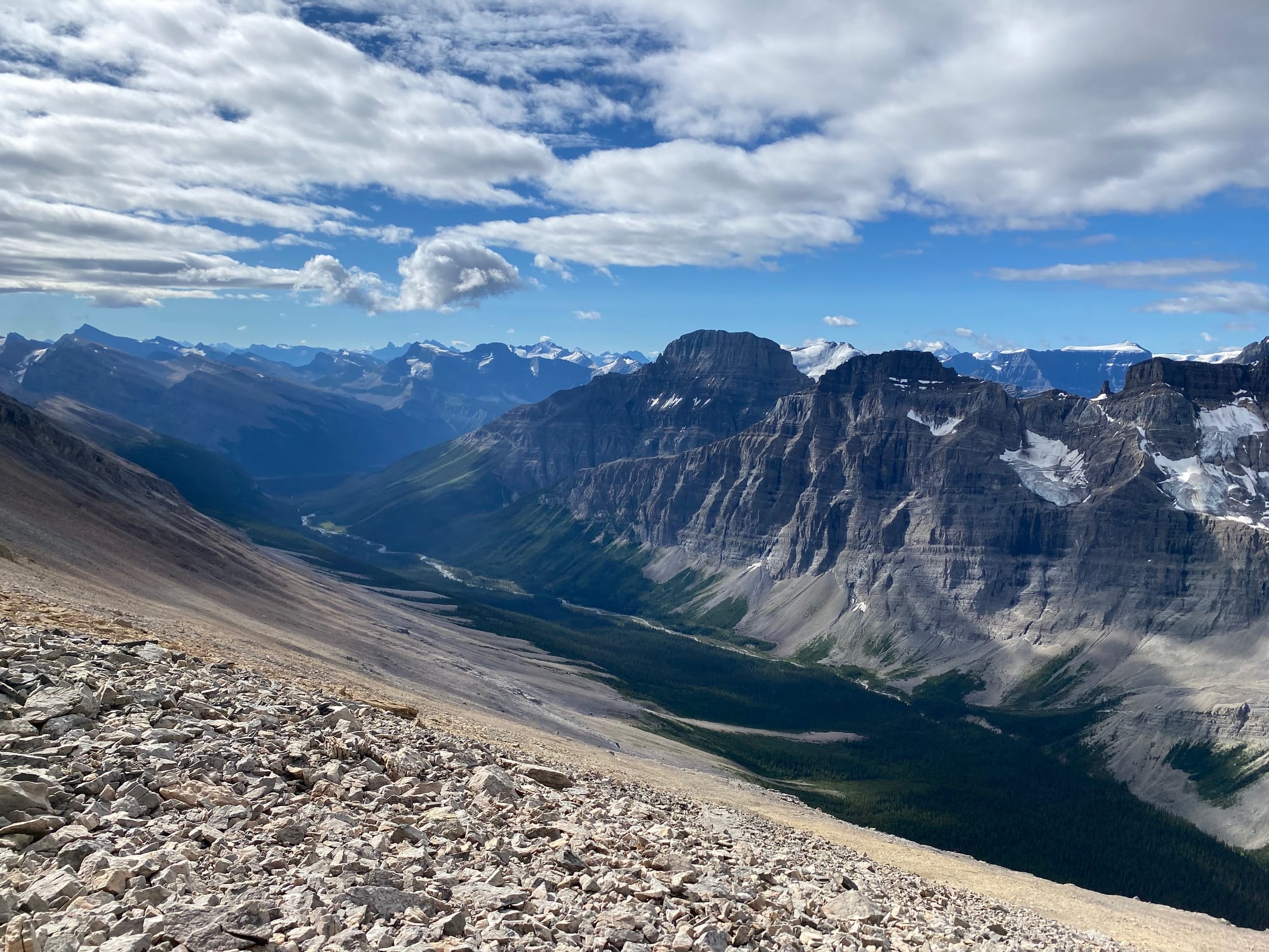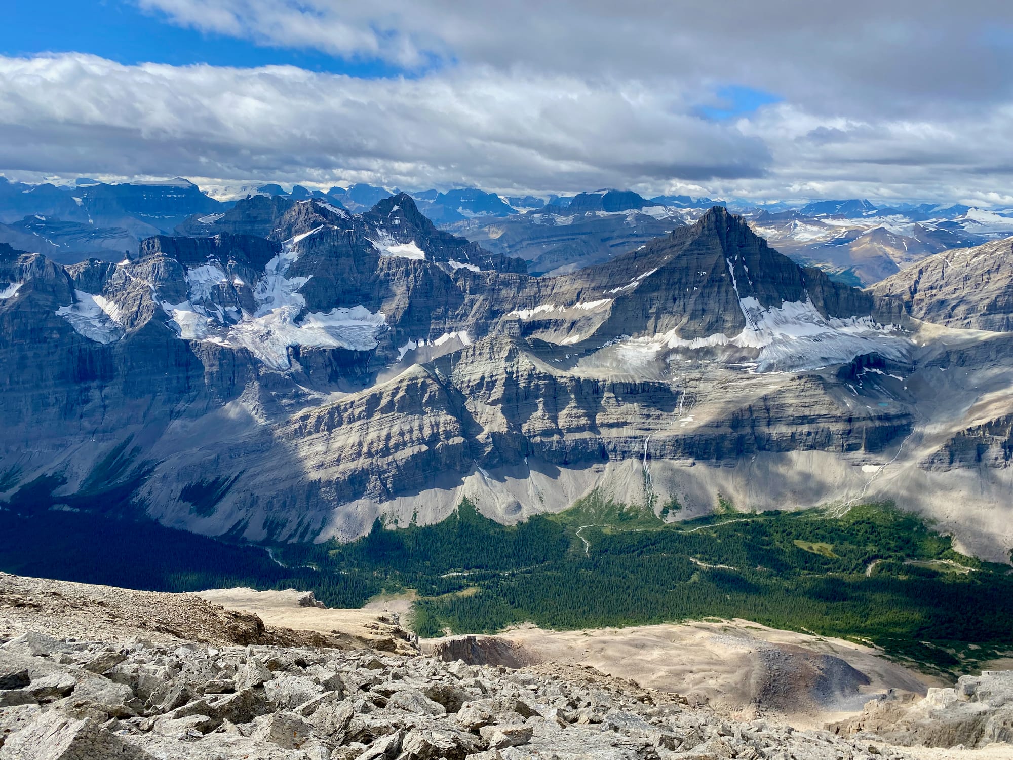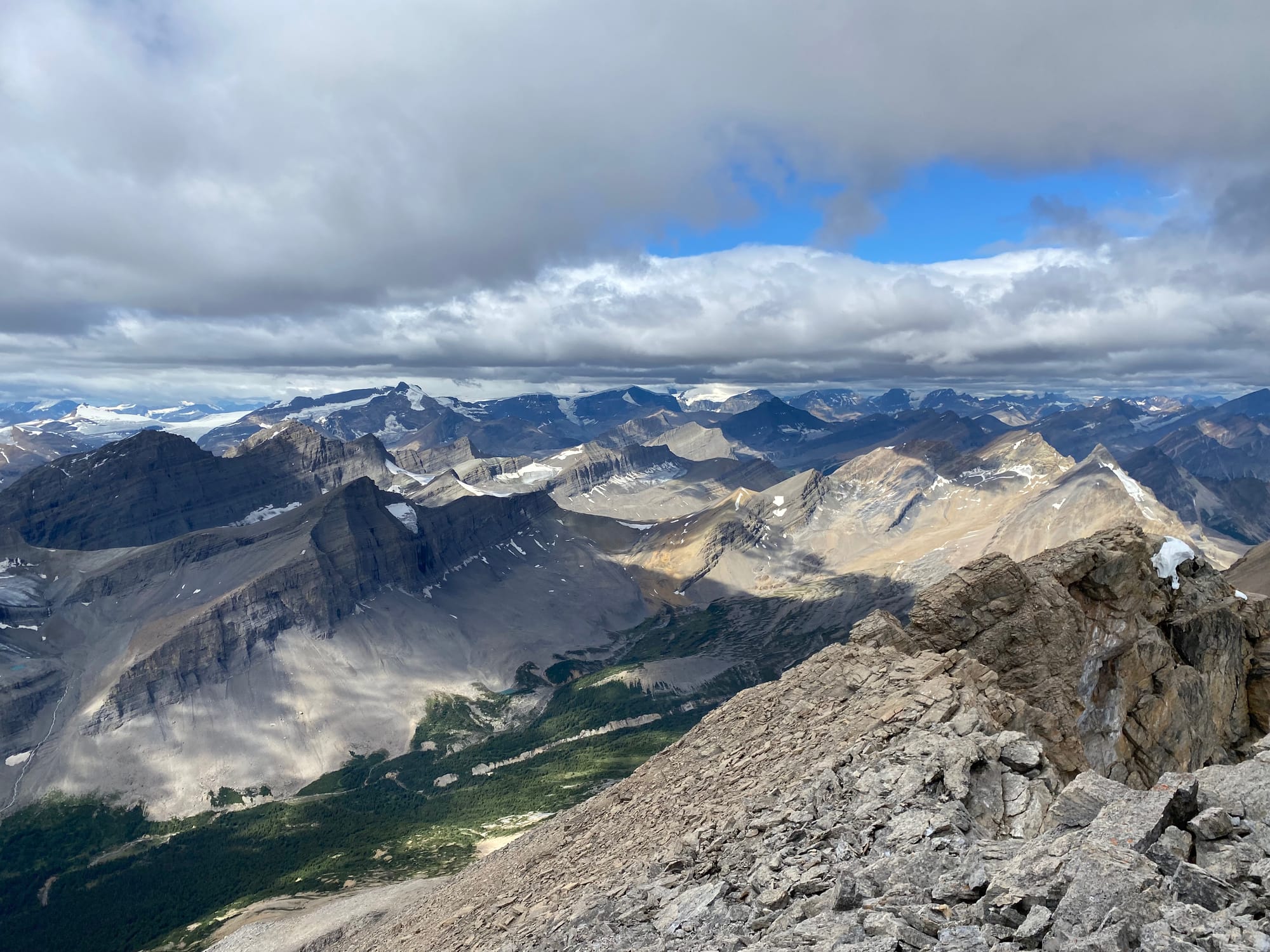 I’d been in the Rockies for almost two weeks but this view still took my breath away. It really put my GDT trip into perspective: I could see almost all the ground I’d covered since leaving The Crossing, and much of the terrain I'd have to cross in the next few days to get to Jasper. I relaxed on the summit for over an hour, taking everything in.