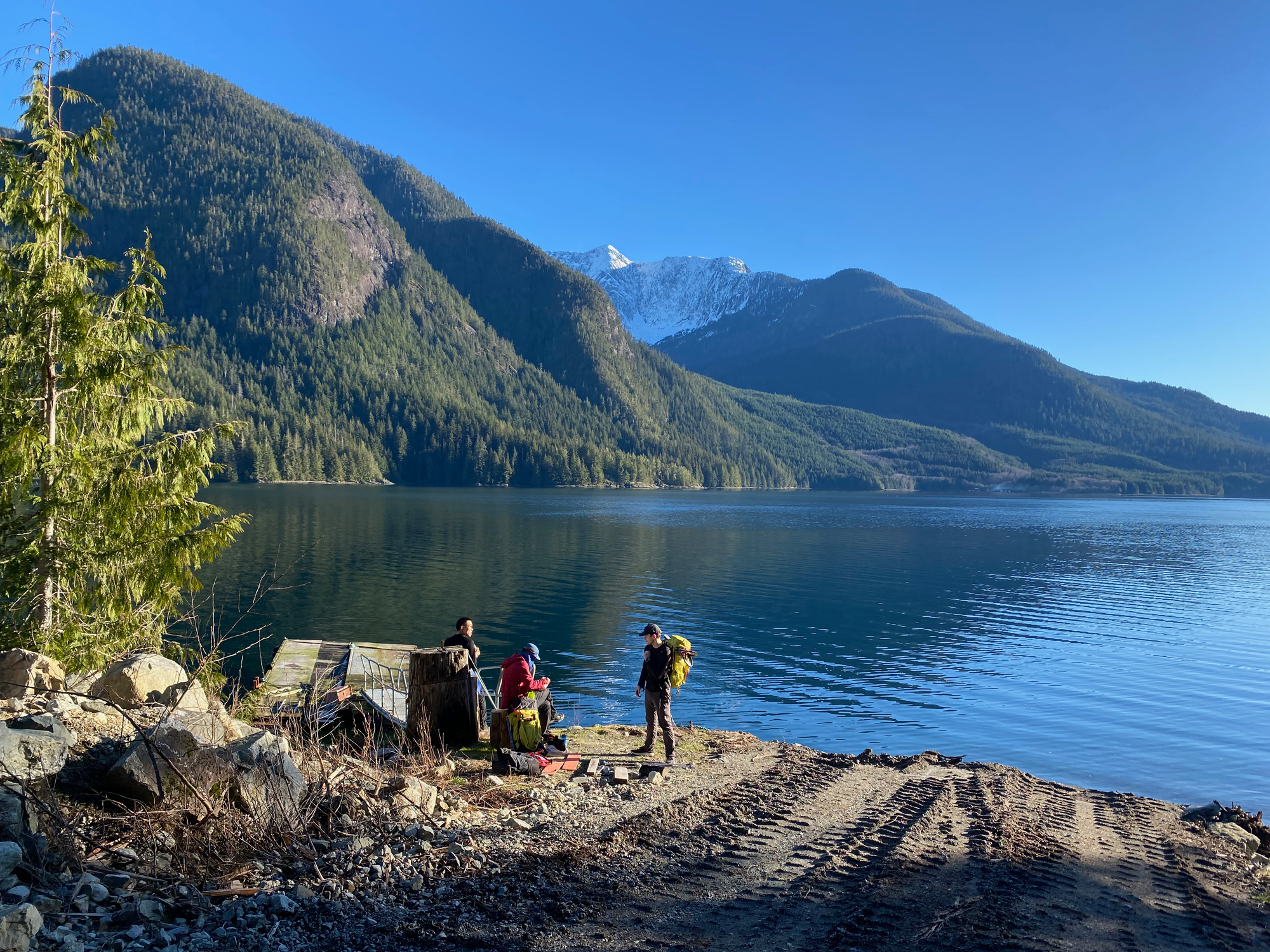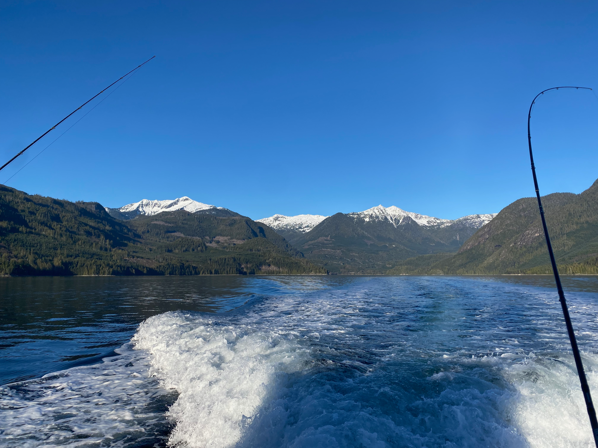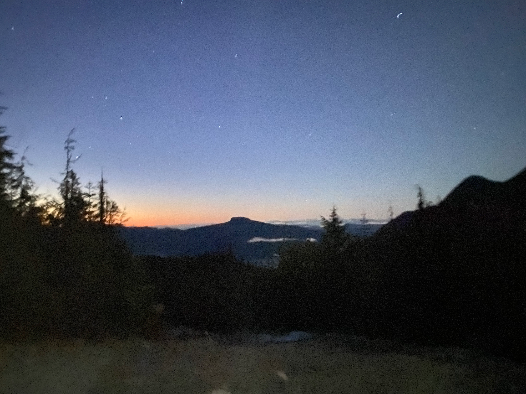 Three hours later our alarms went off. Pickup was at the bright and early time of 4am. I drank several caffeinated beverages and met Alex and Trevor, the rest of our group. The boat arrived around 4:15, and we scrambled over ice-covered rocks to board. The trip took an hour and led us past mountains looming in the dark. The boat was operated by Peter Dick (@ssfunship on Facebook and Instagram) who owns a lodge on Sonora Island.