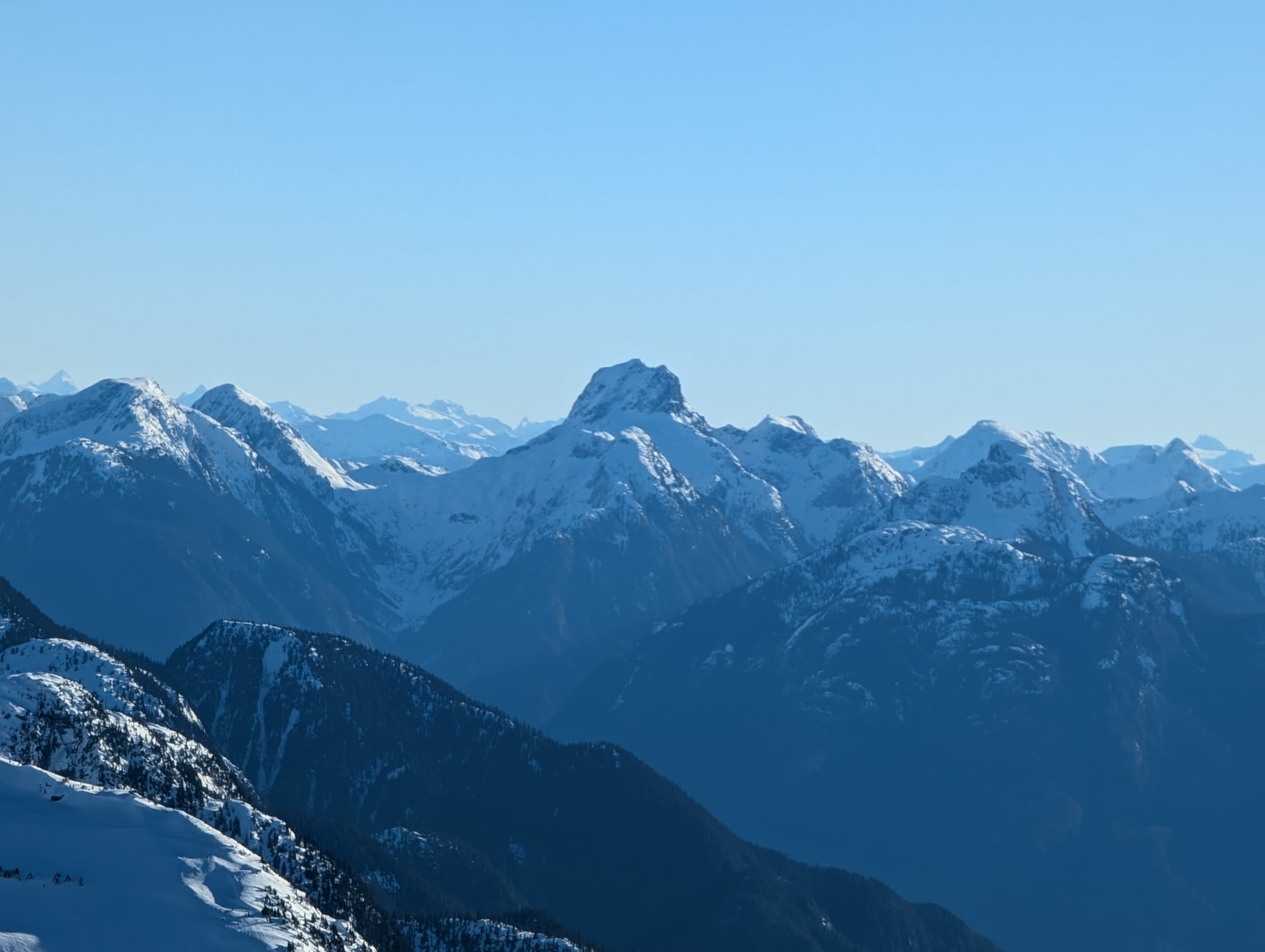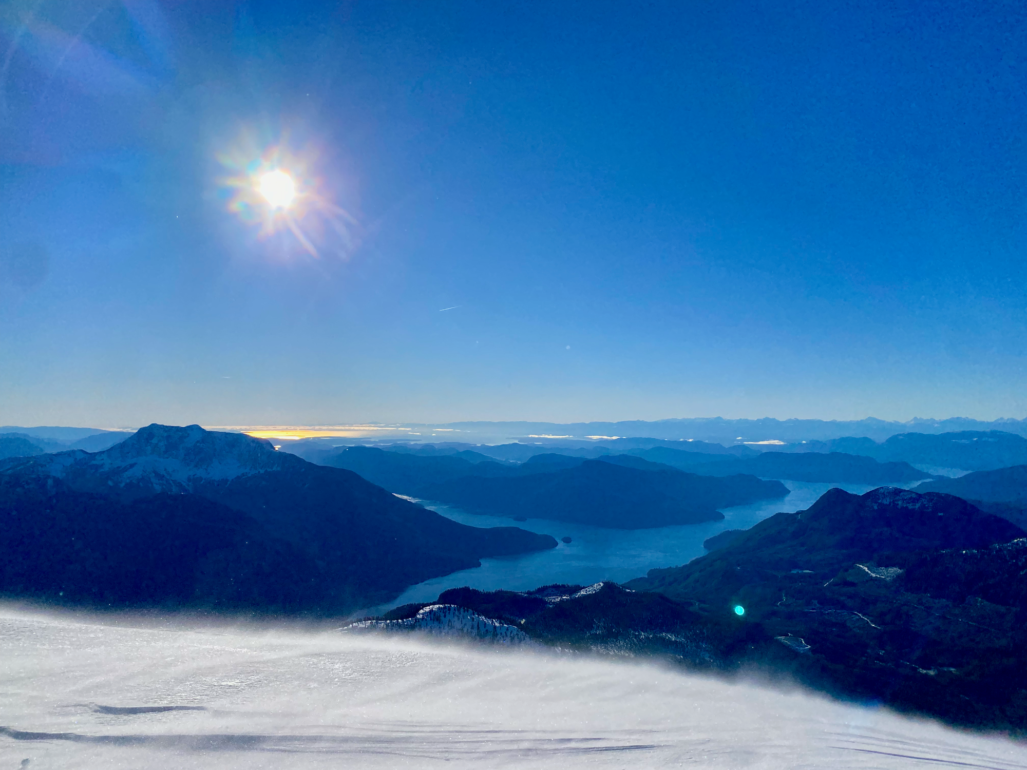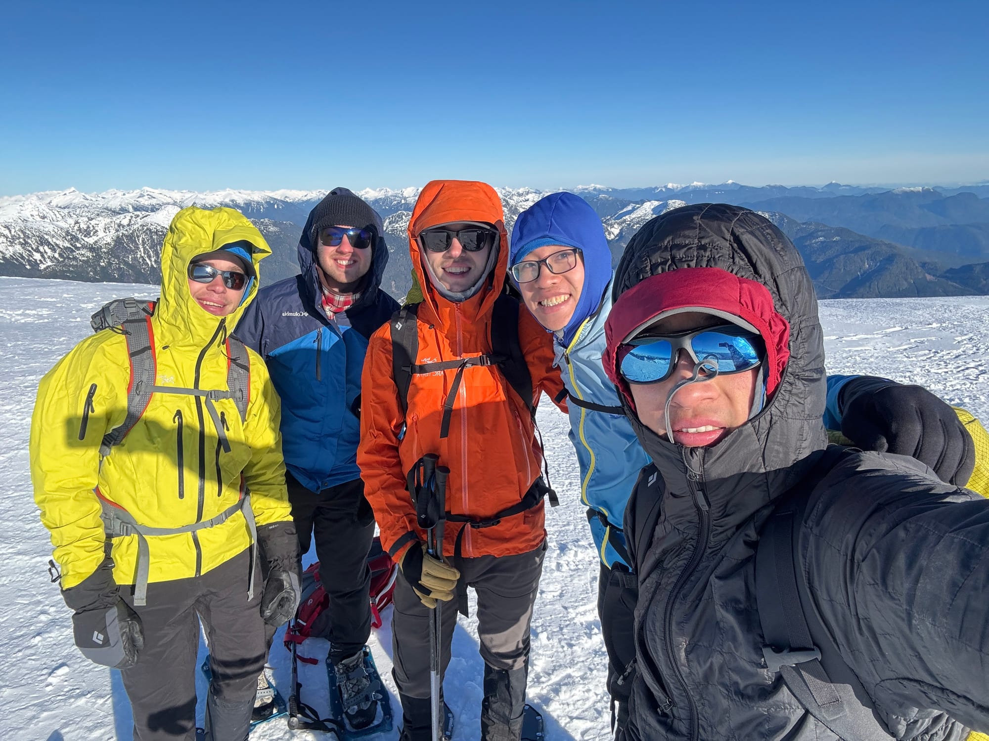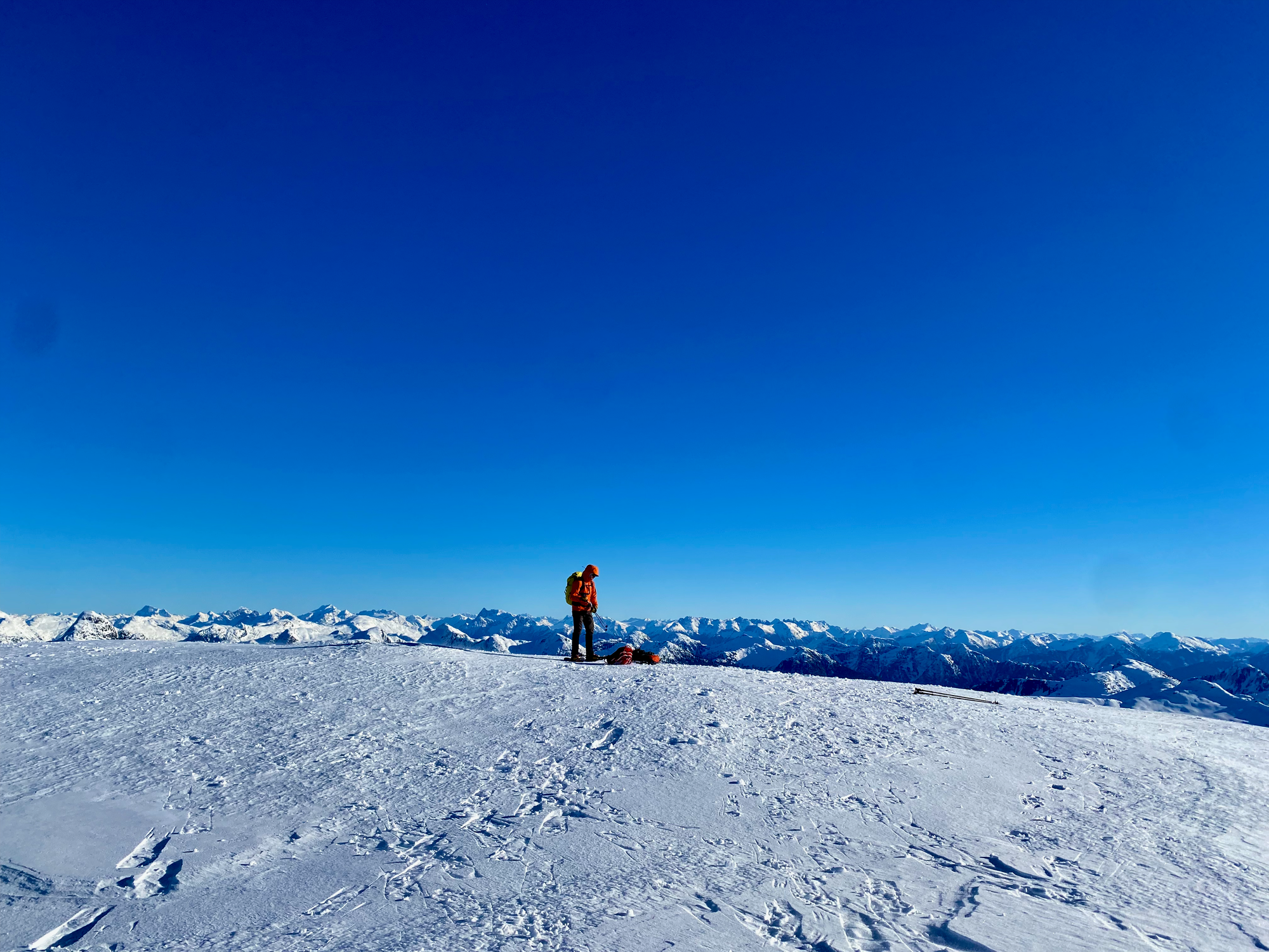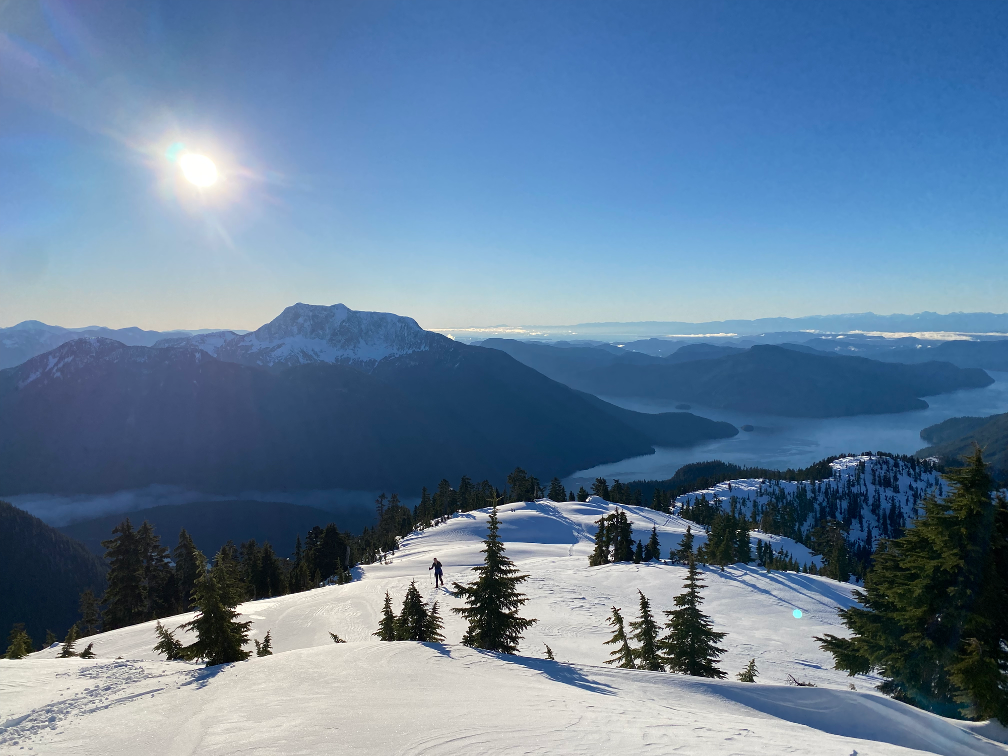This was followed by a steep climb with one short scrambly section, which led to the tip of the SE Ridge. We left our ice axes and crampons here due to the solid snow quality, but they would be needed in icier conditions.