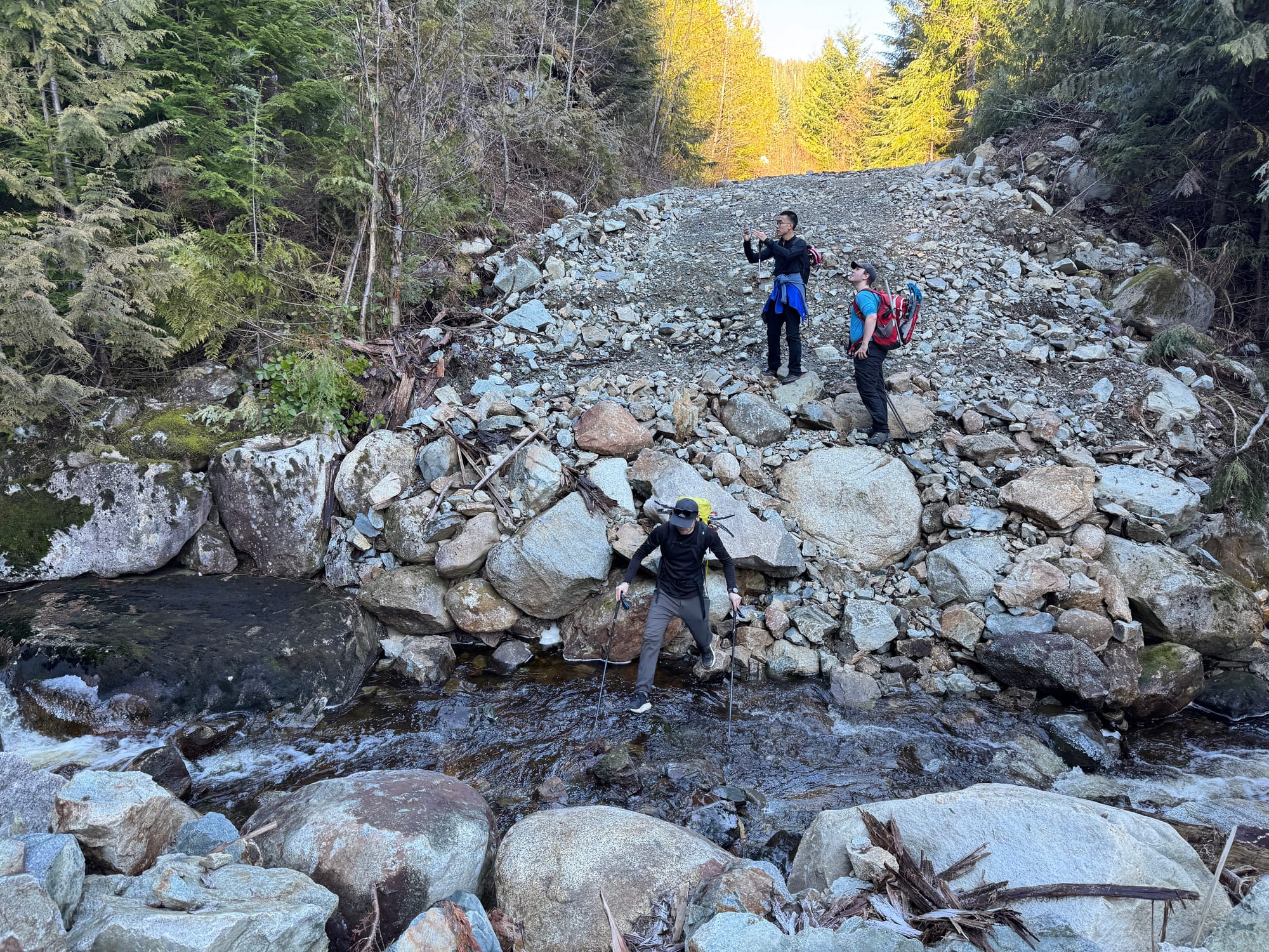 The rest of the plod went by somewhat quickly. A blister on my foot was giving me some trouble but I could still mostly keep up. Some people rock-hopped the first creek crossing but I couldn't be bothered at that point and just walked across.